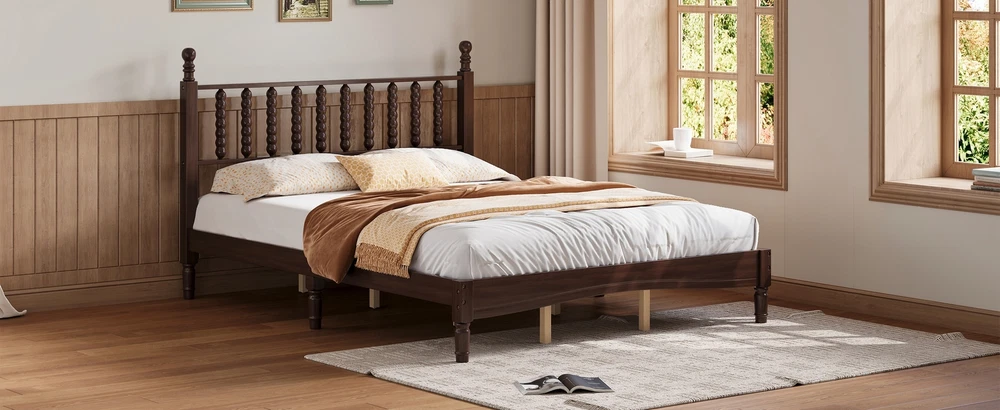 Brand Unbranded Item Length 64.8 Item Width 17.50 Item Height 9.50 Color Walnut Frame Material Wood Type BED FRAME Compatible Mattress Size As described Diamond-ring-1 Simple life Queen Size Wood Platform Bed with Gourd Shaped Headboard,Retro Style Platform Bed with Wooden Slat Support,Walnut Elegant Retro Design: This queen-size platform bed features a charming gourd-shaped headboard, adding a touch of vintage sophistication to your bedroom decor. Sturdy Wooden Frame: Crafted from high-quality wood, the frame ensures durability and stability for years of reliable support. No Box Spring Required: The bed comes with built-in wooden slats that offer robust mattress support, eliminating the need for a box spring. Timeless Aesthetic: The classic retro style blends seamlessly with various interior themes, making it a versatile centerpiece for your bedroom. Overall Dimension: 84.6 x 63.3 x 45 inches (L x W x H) . Suitable for mattress Queen size(Mattress is not included) Queen Size Wood Platform Bed with Gourd Shaped Headboard,Retro Style Platform Bed Add a touch of vintage charm to your bedroom with this Queen Size Wood Platform Bed. Featuring a gracefully gourd-shaped headboard, this bed blends retro aesthetics with modern functionality. The sturdy wooden frame and durable slat support eliminate the need for a box spring, ensuring a stable and noise-free sleeping experience. Crafted from high-quality wood with a warm, natural finish, it’s both stylish and long-lasting. Perfect for any classic or eclectic interior design, this platform bed combines elegance and comfort in one timeless piece. Assembly is easy, and it fits standard queen-sized mattresses. Features: Product Type Bed Color Walnut Material Plywood+Rubber Wood Size Queen Detail Product Dimension Please refer to the Size image Weight Capacity 500LBS Number of Slats 10 Recommended Mattress Thickness 10" Assembly Required Yes Country of Origin Vietnam Item Specifics Brand Unbranded Item Length 64.8 Item Width 17.50 Item Height 9.50 Color Walnut Frame Material Wood Type BED FRAME Compatible Mattress Size As described Payment Returns Diamond-ring-1 Simple life DESCRIPTION PAYMENT SHIPPING RETURN POLICY CONTACT US Shop Category Store Home Other Hot Item Delivery New List Item Help & Info Payment Policy Shipping Policy Return Policy FAQ About Us Queen Size Wood Platform Bed with Gourd Shaped Headboard,Retro Style Platform Bed with Wooden Slat Support,Walnut Elegant Retro Design: This queen-size platform bed features a charming gourd-shaped headboard, adding a touch of vintage sophistication to your bedroom decor. Sturdy Wooden Frame: Crafted from high-quality wood, the frame ensures durability and stability for years of reliable support. No Box Spring Required: The bed comes with built-in wooden slats that offer robust mattress support, eliminating the need for a box spring. Timeless Aesthetic: The classic retro style blends seamlessly with various interior themes, making it a versatile centerpiece for your bedroom. Overall Dimension: 84.6 x 63.3 x 45 inches (L x W x H) . Suitable for mattress Queen size(Mattress is not included) Queen Size Wood Platform Bed with Gourd Shaped Headboard,Retro Style Platform Bed Add a touch of vintage charm to your bedroom with this Queen Size Wood Platform Bed. Featuring a gracefully gourd-shaped headboard, this bed blends retro aesthetics with modern functionality. The sturdy wooden frame and durable slat support eliminate the need for a box spring, ensuring a stable and noise-free sleeping experience. Crafted from high-quality wood with a warm, natural finish, it’s both stylish and long-lasting. Perfect for any classic or eclectic interior design, this platform bed combines elegance and comfort in one timeless piece. Assembly is easy, and it fits standard queen-sized mattresses. Features: Product Type Bed Color Walnut Material Plywood+Rubber Wood Size Queen Detail Product Dimension Please refer to the Size image Weight Capacity 500LBS Number of Slats 10 Recommended Mattress Thickness 10" Assembly Required Yes Country of Origin Vietnam Item Specifics Brand : Unbranded Item Length : 64.8 Item Width : 17.50 Item Height : 9.50 Color : Walnut Frame Material : Wood Type : BED FRAME Compatible Mattress Size : As described Payment Returns All rights reserved.