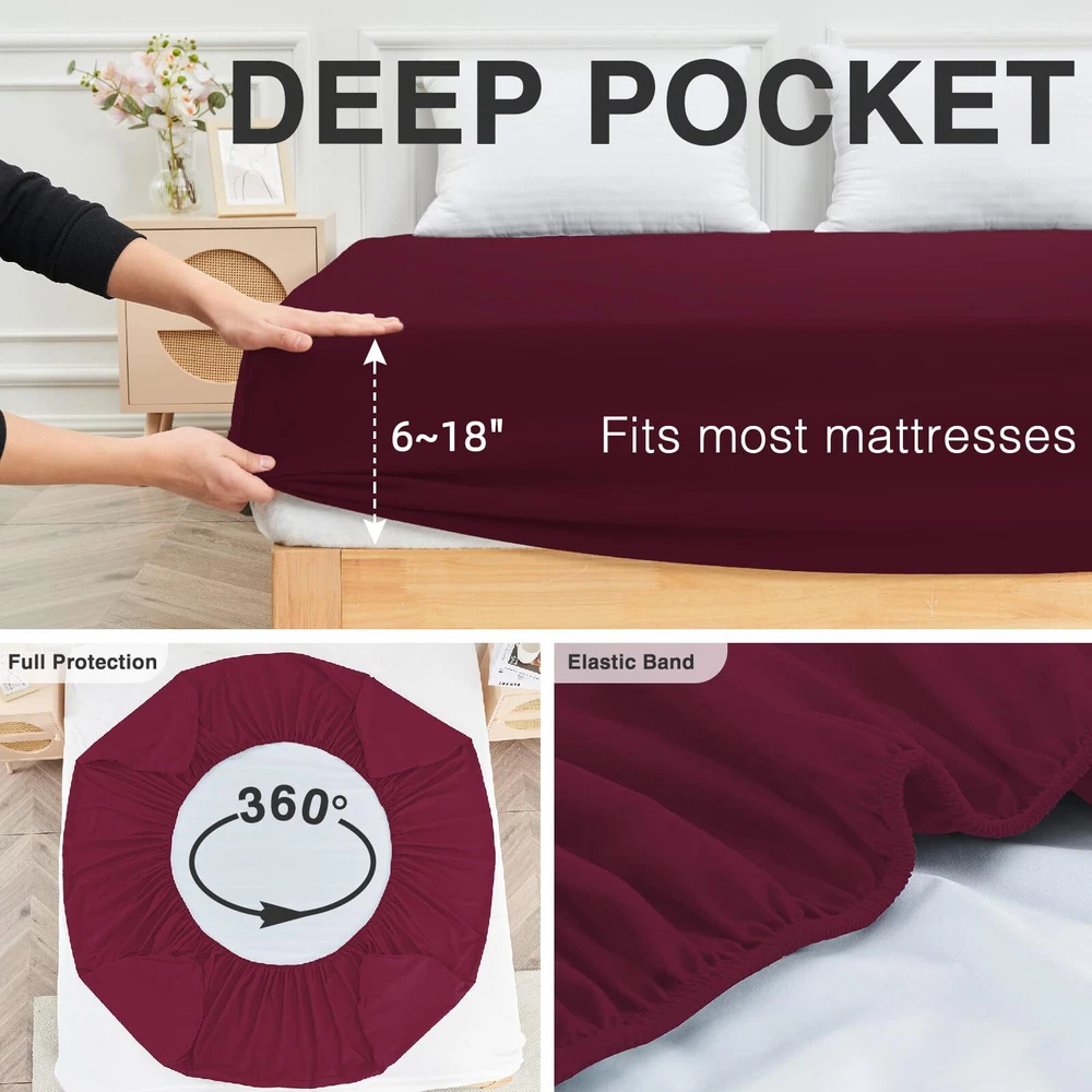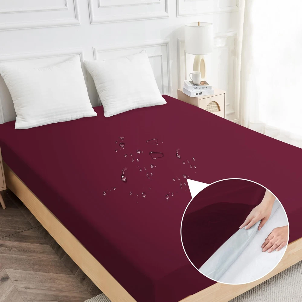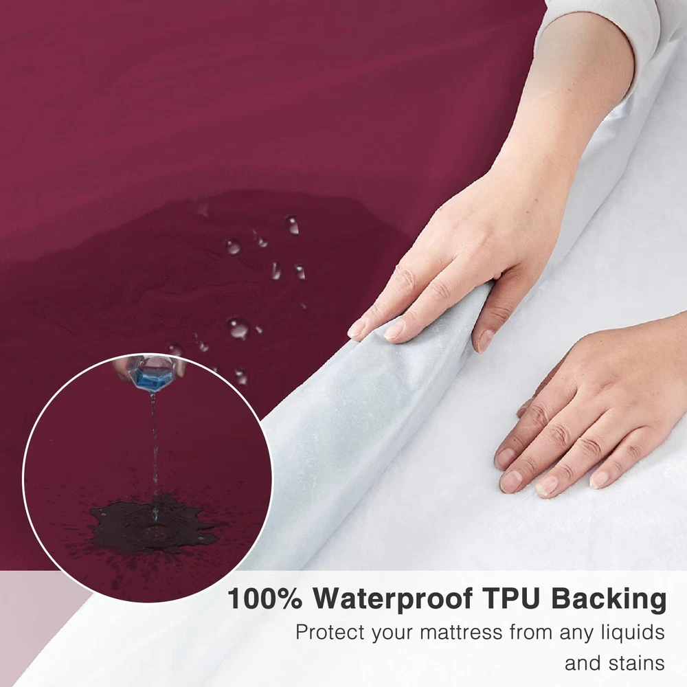 100% WATERPROOF MATTRESS PROTECTOR: The back of the queen size waterproof mattress protector is upgraded with waterproof TPU material, which can better protect the mattress from liquids, bedwetting and stains, prolonging the service life of the mattress, and keeping your bed dry and stain-free for a long time.No more struggling with accidents. SOFT BREATHABLE MATTRESS PROTECTOR: The front material of the mattress protector is made of polyester fabric, which has excellent breathability and allows air and heat to pass through, which can effectively reduce the temperature of the mattress and ensure that the mattress is soft breathable, which can keep it dry all night long, and bring refreshing to the hot summer days. DEEP POCKET MATTRESS PROTECTOR: The queen waterproof fitted sheet fits all types of mattresses including memory foam mattresses, latex mattresses or spring mattresses. The deep, expandable pockets are designed to not only fit any mattress up to 18'' deep, but also to fit securely to the mattress, ensuring that the mattress cover won't slide around and make noise as you toss and turn. MACHINE WASHABLE MATTRESS PROTECTOR: The waterproof mattress cover queen size bed can be machine washed and tumble dried on low temperature, just put it in the washing machine and wash our queen mattress cover with bleach free detergent. Do not dry clean, iron or bleach.Follow the specific washing instructions on the label. NOISELESS MATTRESS COVER: The soft and breathable surface material of the mattress protector can reduce the annoying noise brought by the bed sheet, no plastic feeling or crumpling sound when you turn over, allowing you to enjoy the quietness without changing the touch of the mattress, providing you with a restful sleep and bringing you the best nighttime sleep experience. THE PERFECT CHOICE: The queen mattress cover waterproof can provide a more comfortable sleeping environment for you and your family. It is the best choice for toddlers, children, pregnant women, pets or seniors suffering from incontinence.If you have any questions about the waterproof mattress cover, please contact us and we will reply you within 24 hours.