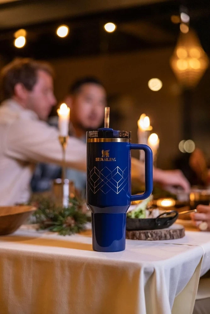 Stanley Quencher H2.0 Tumbler with Handle & Straw 40 oz Deco Collection | Twist On 3-Way Lid | Cupholder Compatible for Travel | Insulated Stainless Steel Cup | BPA-Free | Nightfall Gloss Deco YOUR DREAM TUMBLER: Whichever way your day flows, the H2.0 FlowState tumbler keeps you refreshed with fewer refills. Double wall vacuum insulation means drinks stay cold, iced or hot for hours. Choose between our 14oz, 20oz, 30oz,40oz and 64oz options depending on your hydration needs. The narrow base on all sizes (except 64oz) fits just about any car cup holder, keeping it right by your side. ADVANCED LID CONSTRUCTION: Whether you prefer small sips or maximum thirst quenching, Stanley has developed an advanced FlowState lid, featuring a rotating cover with three positions: a straw opening designed to resist splashes with a seal that holds the reusable straw in place, a drink opening, and a full-cover top for added leak resistance. We’ve also included an ergonomic, comfort-grip handle, so you can easily carry your ice-cold water to work, meetings, the gym or trips out of town. EARTH-FRIENDLY DURABILITY: Constructed of 90% recycled BPA free stainless steel for sustainable sipping, the Stanley Quencher H2.0 has the durability to stand up to a lifetime of use. Eliminate the use of single-use plastic bottles and straws with a travel tumbler built with sustainability in mind. DISHWASHER SAFE: Spend less time hunched over the sink and more time doing the things you love. Cleaning your tumbler and lid couldn't be easier, just pop them into the dishwasher. Unlike plastic bottles that retain stains & smells, this metallic beauty comes out pristine LIFETIME WARRANTY: Since 1913 we’ve promised to provide rugged, capable gear for food and drink - accessories built to last a lifetime. It’s a promise we still keep. Stanley products purchased from Stanley Resellers come with a lifetime warranty. Rest easy knowing we’ve got your back through it all.
