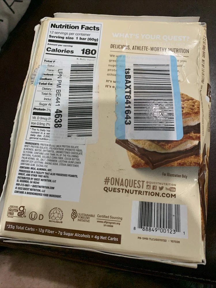 Quest Bars S'mores 2.12 Oz. 12/Box QUN00123