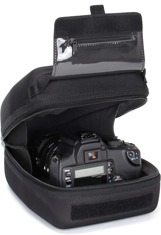 MAXIMUM ACCEPTABLE SIZING DIMENSIONS - Interior Dimensions: 9.25 x 6.5 x 4.5 inches. Zippered accessory pocket accommodates small accessories - MEASURE YOUR CAMERA TO ENSURE FIT! DURABLE, REINFORCED DESIGN is constructed with durable, quality molded EVA material and cushioned interior. This rugged case conforms to the body & lens of your camera for premium protection SECURE AND STRONG belt loop connector or reinforced handle for easy carrying. Use the secure hook & loop flap to allow easy yet secure access to your camera while the case is unzipped METAL ZIPPERS AND SOFT RUBBER PULLERS are reinforced so you can quickly access your gear without fearing zipper breakage EGG CRATE FOAM INTERIOR will protect your DSLR in this sturdy hard shell case designed to keep your camera and 300mm lens safe from accidental bumps