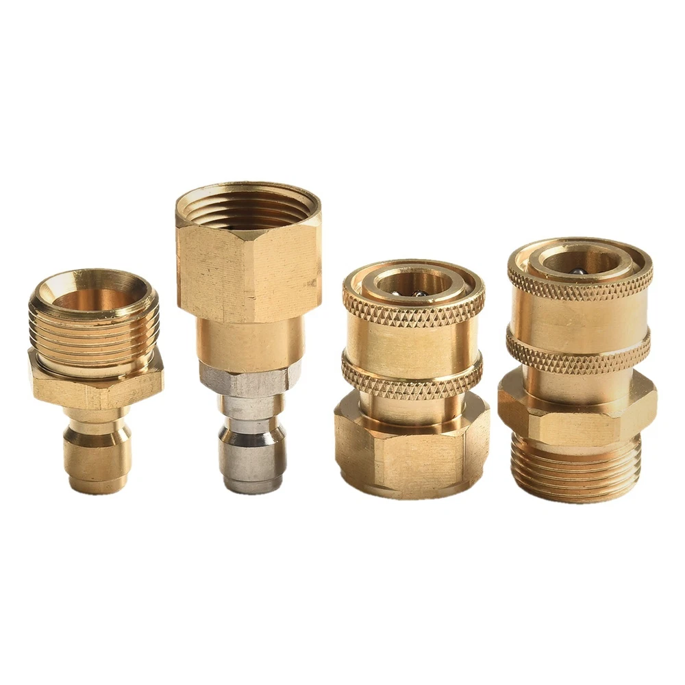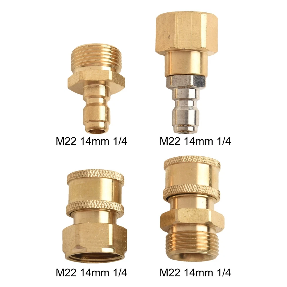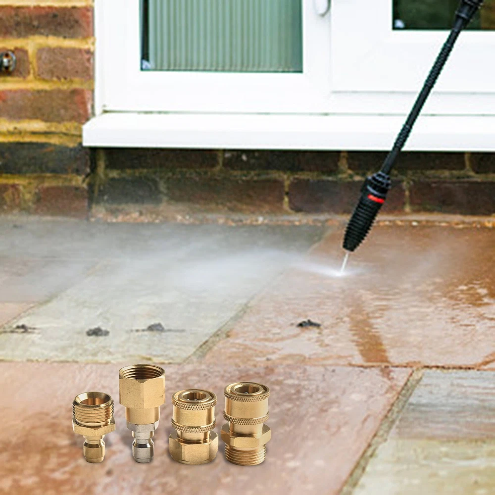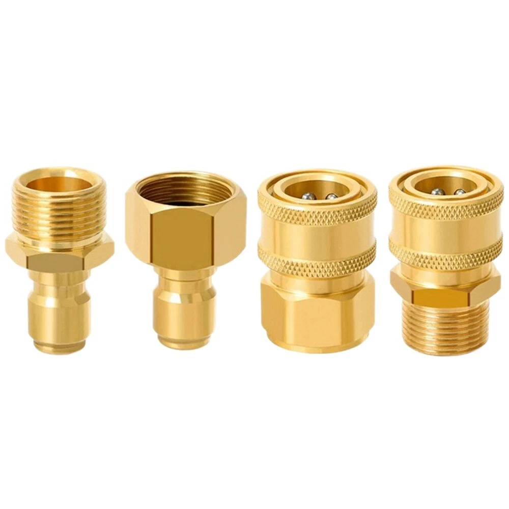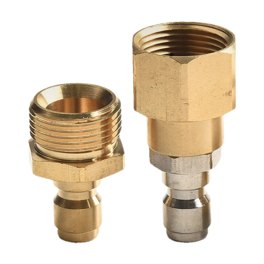 Product Description Features: *Versatile Compatibility: This quick connect adapter set is designed to for adapt to your high-pressure washer hose, with M22-15mm 3/8 inch or 1/4 inch and M22-14mm 3/8 inch or 1/4 inch quick disconnect couplings. *Effortless Connection: The quick connector kit allows for easy and fast connection and disconnection of your high-pressure washer hose. *enduring Brass Construction: Made of high-quality brass material, these connectors are sturdy, rust-proof, corrosion-resistant, and built to last. *Excellent Adapter for High-Pressure Washer Hose: These adapters provide outstanding compatibility with your high-pressure washer hose, a secure fit. *Convenient and Practical: With these quick connect fittings, replacing or switching accessories on your high-pressure washer is hassle-free and user-friendly. Specifications: * Product Name:Quick Connect Adapter *Material:Brass *Size:M22-15mm, M22-14mm *Color:brass *Fitment:High pressure cleaning machine hose *Number of Pieces:1 set Package Content: 4pcs*Male and female connector Note: 1. The real color of the item may be slightly different from the pictures shown on website caused by many factors such as brightness of your monitor and light brightness. 2. Please allow slight manual measurement deviation for the data. Payment Payment must be completed within 5 days. If you have any problems about payment, please contact us via ebay message. Delivery details We only ship to confirmed ebay Order addresses. Please comfirm that your Order address is in line with your shipping address. Please kindly note that the c ombined shipping is not provided because the shipping fee is calculated by weight. Also, the each additional item means exactly the the same color and size. It takes about 7 -15 working days to US; about 10-30 working days to other countries. Transit time may be a little delayed because of the bad weather and customs inspection . If you do not receive your item within 30 working days since payment finished, please contact us immediately for further assistance. Contact us We strive for 100% customer satisfaction! Positive Feedback is very important to us. If you have any questions, p lease feel free to contact us via "Ask seller a question" . We will reply your email within 24 working hours. On Jan 20, 2025 at 10:11:27 PST, seller added the following information: