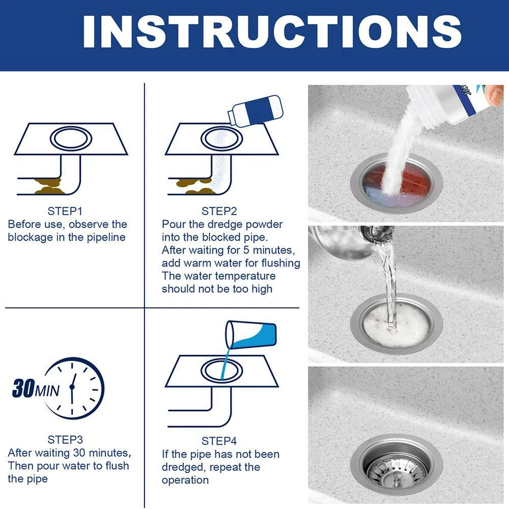 Description Description&Preview shipping&policy Description: Powerful and Effective Deodorizing and Cleansing Easy and Convenient Safe for All Surfaces Multple Uses Powerful Sink & Drain Cleaner gets the job done by dissolving grease, hair, paper, soap scum, oils, and organic matter easily. It wont harm your drains, pipes or septic system, as its made only from non-corrosive & non-caustic materials. It liquifies fats, oils, lint, paper, hair and other organic matter causing drain obstructions. Using a high-density formula, our products stick to the walls of your pipes and alters the pH level to rapidly dissolve the obstruction. FEATURES: Dissolves grease, hair, oils, soap scum, and paper products easily Perfect to use on pipes, toilets, sinks, tubs and in other main drain lines Made of a non-corrosive formula thats safe on septic systems Uses its high density to cling to pipes and liquefy drain obstructions Non-corrosive, noncaustic and odorless formula Package Includes: 1 x Super Clog Remover /2 x Super Clog Remover/3x Super Clog Remover Note: This product continues to take effect and has an effective time, if you need to clear the blockage immediately, after buying the consequences!!! Use procedure: 1. Pour in a spoon of powder. 2. Powder will immediately foam,soak it for 30 mins. 3. Rinse after 30 mins. Preview: Thank you for your purchase Problems? You can follow below process to contact us. There is a time zone difference,but we will do our best to quickly response to your questions: Shipping ● We will arrange shipping for you within 24 Hours after payment cleared except the holidays. ● We always send the item to the address you give us on Payoneer to ensure the security of the item. If you have changed your address, or want us to ship to another address, please change to the new address when you pay us with Payoneer, otherwise we will not be responsible if the package is lost. Payments We accepts Payoneer only If you have any questions about the payment,please contact us through eBay message. Import Duties In case some duty is due Upon delivery, it is your responsibility to meet that expense and this may cause delays to delivery schedule and you may have to pickup goods at the customs office. Terms & Conditions By bidding on this item,the Buyer agrees to all of the terms and conditions as outlined in this listing .please ensure to read and agree to All eBay terms and Conditions before bidding. All pictures are for illustration purpose only and Colours may vary slightly. Our store obeys all eBay Rules and Policies. Returns Policy To Return an item you must contact us and take photos of your item to clearly show any damage or unusual aspects of it. Approved returns will be subject to inspection on arrival. Items must be returned in original condition with all original packaging. All shipping and handing charges are non-refundable Return delivery costs are the responsibility of the buyer. We will cover the cost if sending replacement/repaired items. Within 7 days after receiving your products, we offers a no-hassle 7 day exchange/replace only if your items are found to be defective by manufacturer.