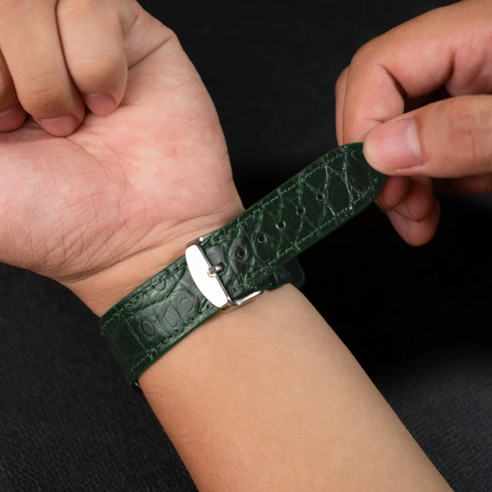 Measurement: Size: 16mm, 18mm, 19mm, 20mm, 21mm, 22mm, 24mm Strap length: 125mm x 75mm Strap thickness: 2mm – 2mm Buckle: Stainless steel buckle included Feature : Quick-release spring bars