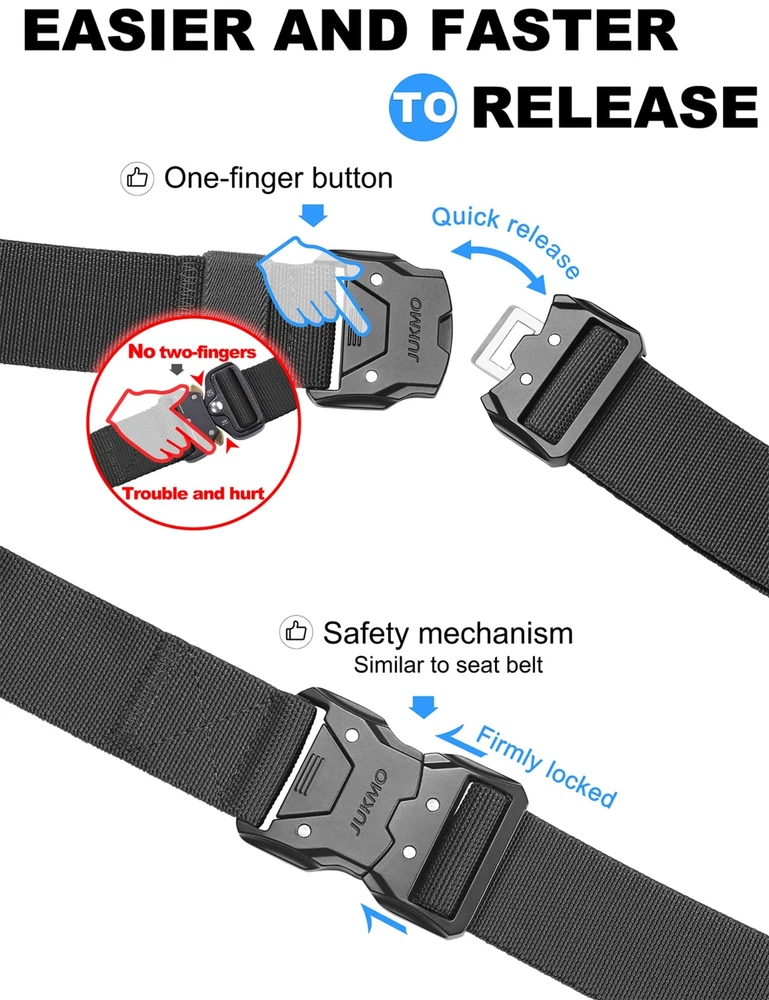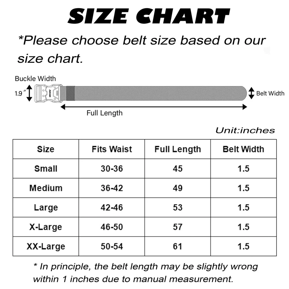 is a brand that is extremely detail-oriented focusing on men's belts. In order to ensure that our men’s belts meet the expectations of every customer, every detail of product quality is strictly checked by our staffs. We have only goal that is to make every customer feel that they make every penny count and that the product is worth owning, which is our responsibility. BUTTON QUICK RELEASE BUCKLE:The crafted heavy-duty buckle is made of alloy. As long as you push the button on the buckle, the buckle would release instantly. It is super convenient to release your pants for doing whatever you want to do. You would never meet a belt so quick convenient like this. The designed buckle has very strong load-bearing capacity, which can meet your different wearing requirements HIGH QULITY STRETCH NYLON:We intent to make the strap be stretch. The strap is made by special stretch material which is more solid than regular belt. More than that, it is very sturdy as well as stretch, which make your waist be more comfortable as well as stay tight, when you take large range of activities. Anyone who do physical activities for a long period of hours will get a great use out of the tactical belt FOR SPECIAL YOU: Our solid belt suits for military, SWAT, fire fighters, work, sport and other tactical users. Anyone who need to take any activity will be in harmony with the belt AS A PRESENT: Our elaborate belt is enclosed in an elegant gift box for you giving whoever you love, or yourself SHOPPING :If you meet any problems after purchasing the belt, please don't hesitate to us. We promise to provide you 100% satisfying