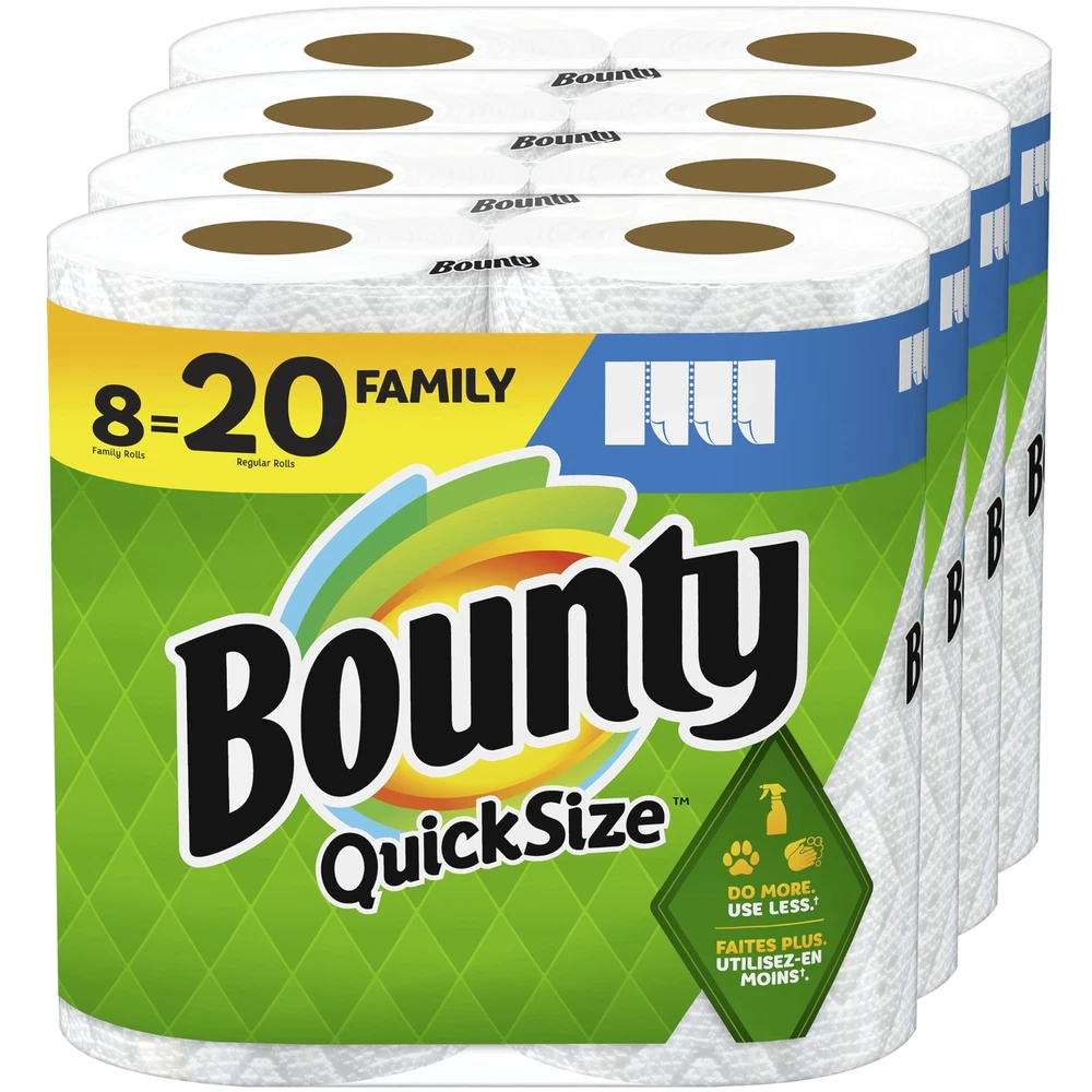 Spilled your drink? Quick! The Quicker Picker Upper. Be ready to tackle messes and spills with Paper Towels! Each sheet is 2x more absorbent, so you can use less and pick up spills and messes quicker than the leading ordinary brand. That’s why is the Quicker Picker Upper! Paper Towels are available in two sheet sizes, Full Sheet and Quick Size, so you can choose which option works best for you. Quick Size towels are versatile, so you can choose your sheet size depending on your mess. And if you’re buying the bigger packs, you’ll always have on hand. has a variety of pack and roll sizes to fit your needs. products are proudly made with American jobs and we’re fully committed to creating solutions for a sustainable future. Across all our products, we consider the impact on people, forests, and the world. That’s why for every tree we use, at least two are regrown so you can conveniently and confidently clean messes in the kitchen and around the house knowing Paper Towels is helping to keep forests greener. always has your back in and out of the kitchen so whether it’s juice on the counter or ice cream on the table, we make sure spills won’t stand a chance. *vs. leading ordinary brand Pack contains 8 Family Rolls of white Quick Size Paper Towels More sheets, more tasks in every roll* *vs. Double Plus More absorbent so you can use less* *vs. leading ordinary brand Picks up messes quicker* *vs. leading ordinary brand With Quick Size rolls you can choose your sheet size based on the size of your mess. 4 packs of 2 Family Rolls = 20 Regular Rolls Most Awarded Paper Towel* *based on online media awards for the past 6 years Why use more when you can use less* *vs. leading ordinary brand