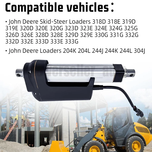Specification Condition: New Part Number: AT494284, AT424407, AT361276, AT471581, AT318535 Strict quality control standards to Build and test 100% NEW with high quality Fitments: Fit For John Deere Skid-Steer Loaders 318D 318E 319D 319E 320D 320E 320G 323D 323E 324E 324G 325G 326D 326E 328D 328E 329D 329E 330G 331G 332G 332D 332E 333D 333E 333G Package: 1 * Quick Tach Actuator as picture shown Notes: Please compare your original part with our product display pictures, to ensure this item fits your car. Even if your car is shown in the eBay compatibility guide, you must read the Specification and any other notes carefully. We try to provide the best service to give you better Shopping Experience. If you have any questions or concerns, please contact our customer service to get help in time. On Feb 17, 2025 at 05:50:54 PST, seller added the following information: