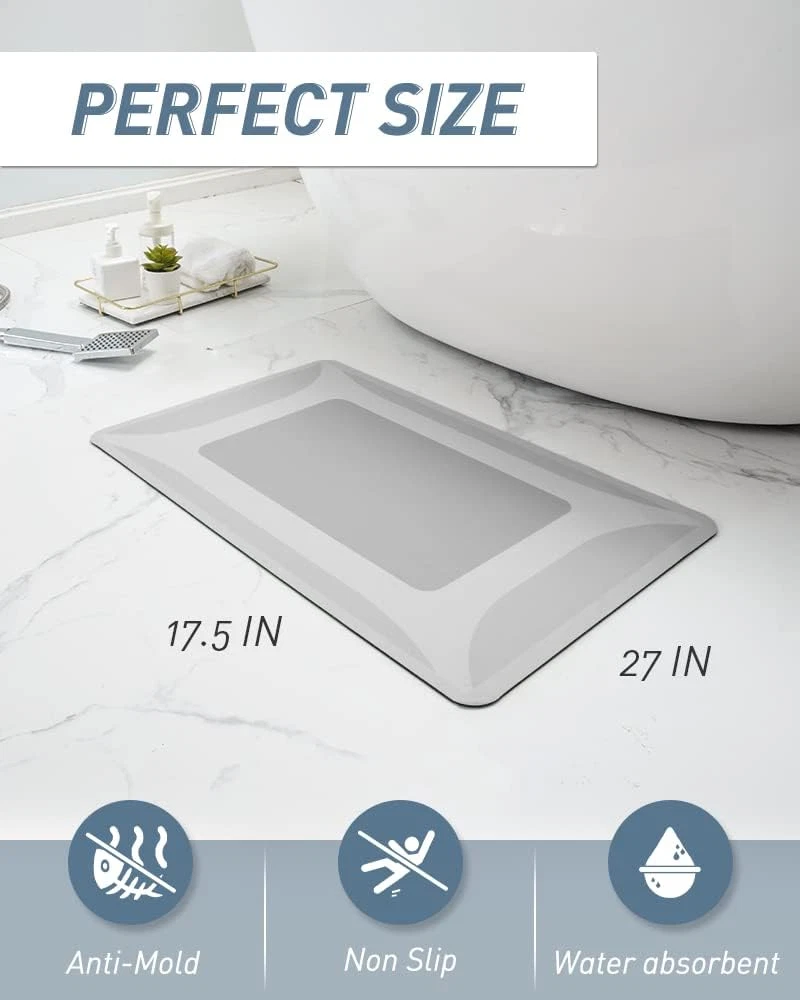 Store New Arrivals Add to Favorite View Feedback Sixhome-Bath Rug-Quick Dry Absorbent Rubber Backed Thin Bathroom Rugs Fit under Door-Bath Mats for Bathroom Floor Mat in Front of Sink-Shower Rug 17"X27.5" Description Item model number ZT bath mat Style Modern Weave Type Machine Made Pattern Solid Warranty Type After-Service Is Stain Resistant Yes Theme Magic Number of Pieces 1 Is Autographed No Brand SIXHOME Material Microfiber Age Range (Description) Adult Rug Form Type Bath Mat Manufacturer SIXHOME Item Thickness 25.5 Inches Indoor/Outdoor Usage Indoor Water Resistance Level Water Resistant Room Type Bathroom Item Weight 0.02 Pounds Pile Height Low Pile Construction Type Machine Made Occasion Housewarming Special Feature Absorbent Color Grey Back Material Type Rubber Product Dimensions 17"L x 27.5"W Size 2'4" x 1'5" Soft Diatomite Surface: New-Tech bath mat made of soft foamed diatomite, has all the advantages of diatomaceous bathroom floor mat like magic absorption and drying speed, impressive durability. Furthermore, it’s more comfortable and cozy Rubber Backing: Skid Resistant and waterproof rubber backing is one of the best bathroom mat backing. It can grip firmly on wet and smooth floor. Dripping water won’t seep underneath. Moreover, it won’t tear apart or become disgusting yellowish. Absorbent&Quick Dry: Breathable porous foamed diatomite can suck up water and splashes instantly while stepping on and fully evaporate quickly after leaving, as if it had never been wet. Easy Clean & Low Profile: Dust and hair can be quickly removed by shaking or rinsing. Low profile design make it a perfect thin bathroom rugs fit under door, and your robot vacuum cleaner can work without obstacles. Product Description ABOUT US We offer the best prices around on high quality products. Our E-store includes media such as books, movies, music and games while offering electronics, toys, sporting apparel, clothing, tools, general home, garden items and more. SHIPPING We are always working hard to ensure your package arrives as soon as possible. Please understand that some factors like weather, high postal traffic, and the performance of shipping companies are outside of our control. We offer free shipping to the lower 48 states and ship within 2 business days of payment, usually sooner. We do not accept P.O. Boxes. Please provide a physical address. RETURNS We offer a 30-Day Return Policy on items which you are not completely satisfied with. You have the option for a full-refund or an exchange of the item. No returns are available on items shipped outside of the USA. PAYMENT We accept PayPal. CONTACT US This page content is yet to come Please ad us to your favorite seller and visit again later Thank You