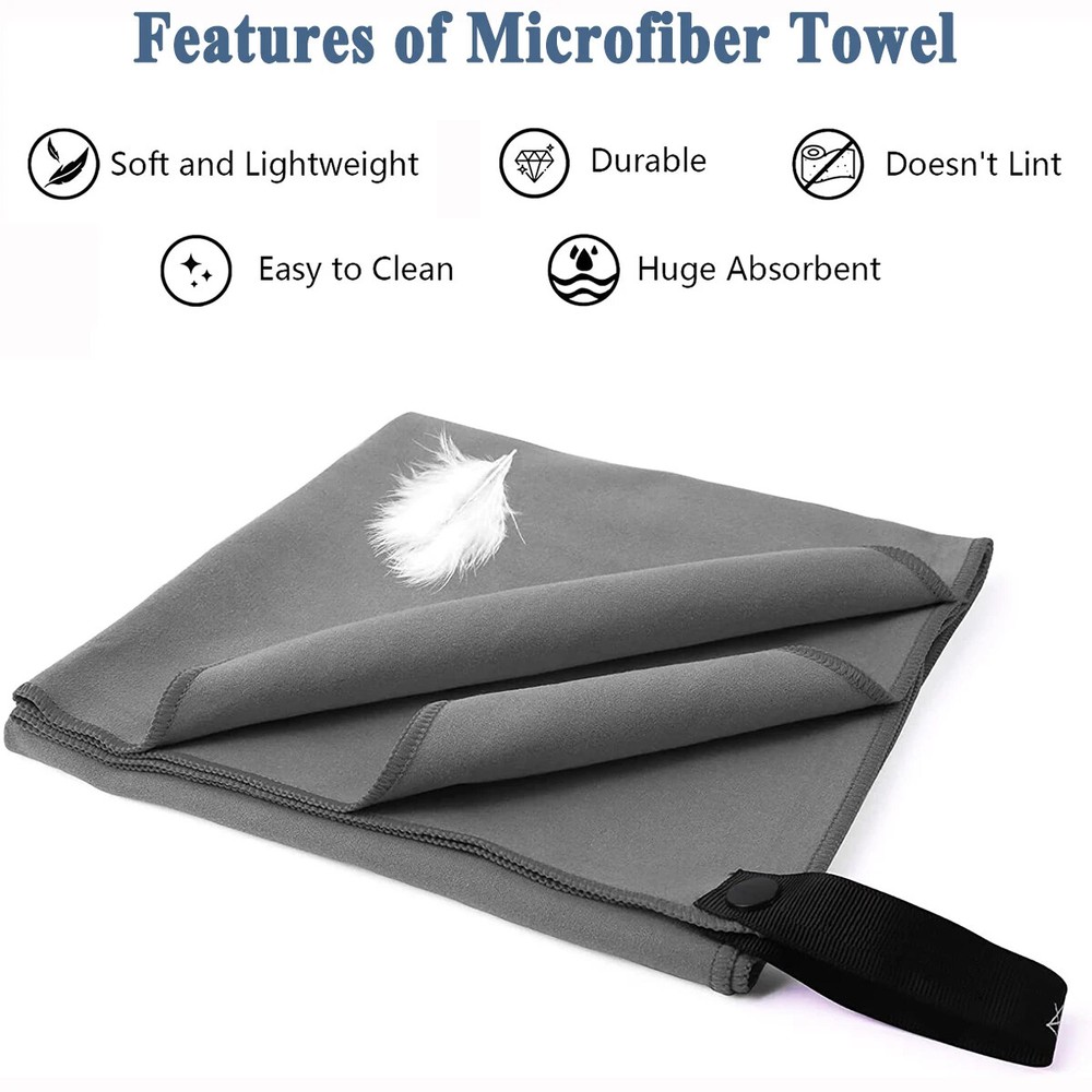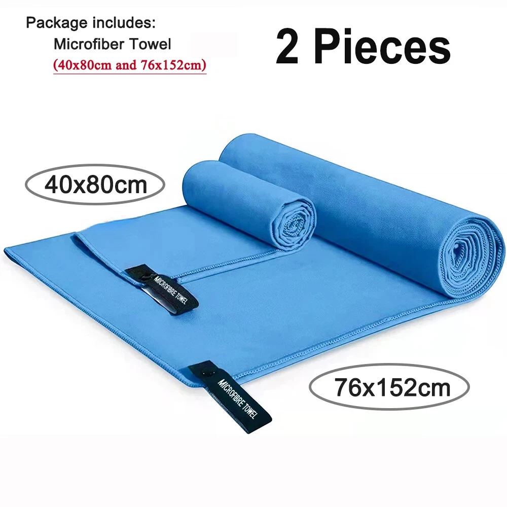 Quick Drying Microfiber Towels / Beach Towel / Sports Travel Swimming Towel / 2 Pieces Two pieces towel includes : One face/hand towel 40x80cm with one Extra Large 76x152cm Ultra-Soft microfiber fast drying towel Quick Drying : Dry up to 10 times faster than normal towels. Hang it outside and it will be dry very soon. Super Absorbent: This Ultra-Soft towel can hold up to 5 times water of it's weight. Easy to Carry Out: Light weight towels come with one carry bag. Towels with sturdy snap loop. Perfect for hanging out to dry.