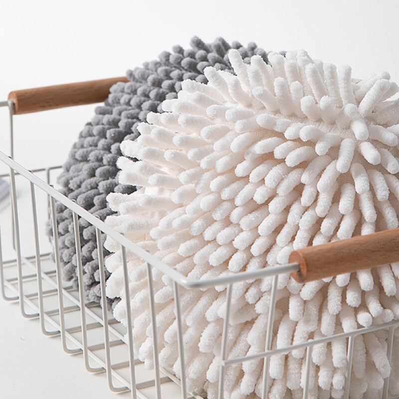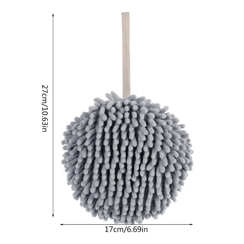 Chenille Hand Towels With Hanging Quick Drying Cloths Towel Bathroom Kitchen Absorbent Washable Soft Towel Features: Microfiber Chenille is a new type of yarn material, which has the characteristics of high-end luxury, soft and comfortable, super absorbent water and good drape 2. The novel design, like a ball, is simple and stylish. It provides a hand-washing function when decorating your living space. Towels with hanging rings are easy to store and use 3. Superfine fiber has a built-in high-quality sponge, which absorbs up to 400ml of water 4. It has extremely strong absorption power instantly. From for palm to fingers, you can fully enjoy the dryness without losing, full suede, soft and comfortable skin friendliness Specifications: Material: Chenille Color: White,gray Size: 31x17x17cm Weight: 80g Note: 1.Item color displayed in photos may be showing slightly different on your computer since monitors are not calibrated same 2.Please allow 1-3mm slight deviation due to manual measurement. Thank you Package included: 1pc Hand Towel