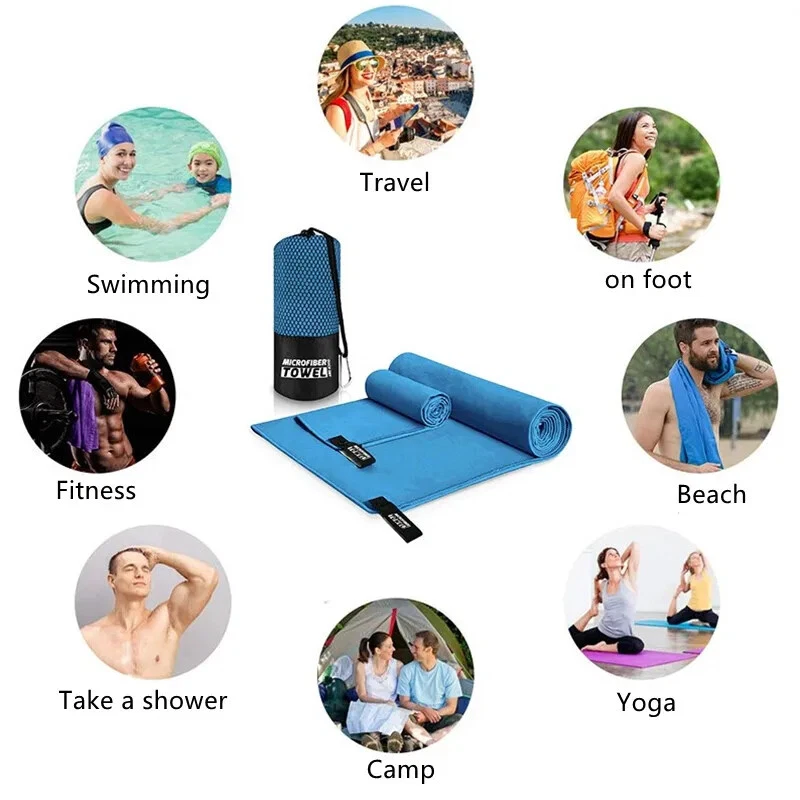 Ultra Lightweight Fast-Drying Microfiber Beach Towels with Bag