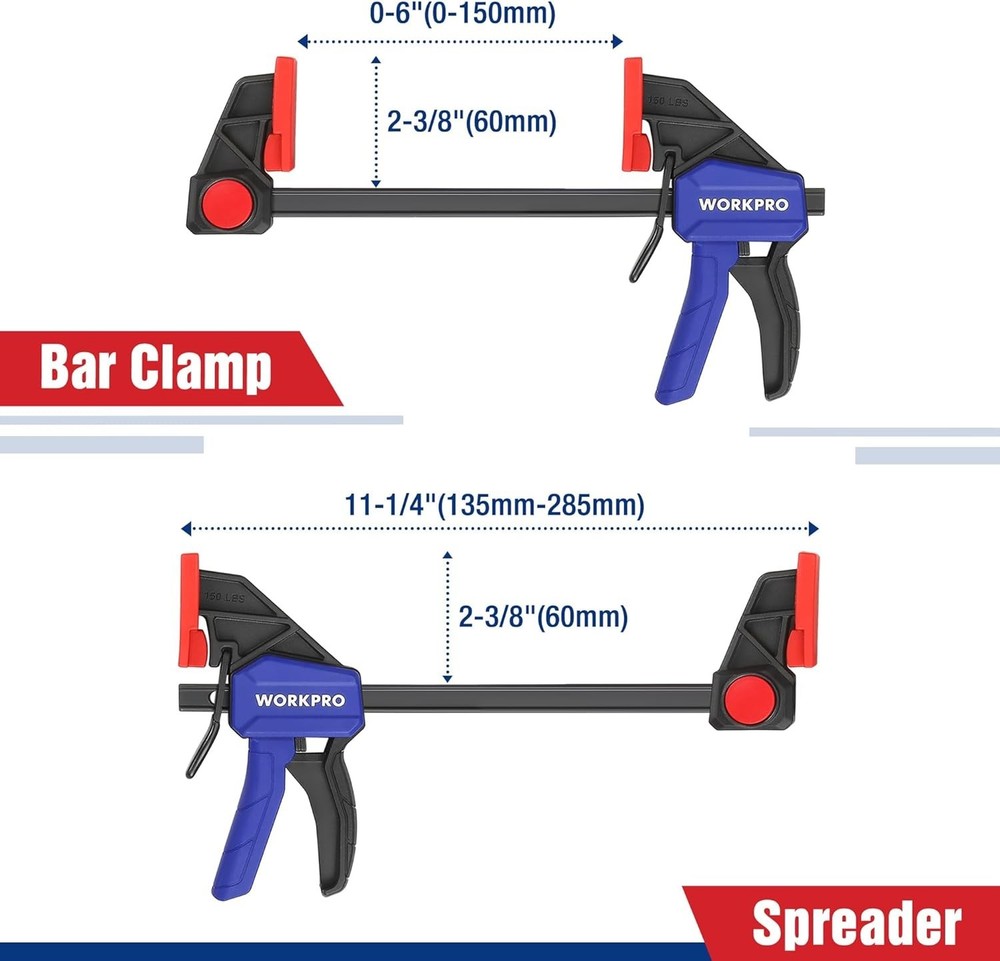 Quick-Release 6-Inch Wood Clamps, 2-Pack | 150 lbs Load Limit for Woodworking ‹ › ‹ › ‹ › ‹ › ‹ › ‹ › ‹ › ‹ › ‹ › ‹ › Quick-Release 6-Inch Wood Clamps, 2-Pack Enhance your woodworking experience with our Quick-Release Wood Clamps, designed for both efficiency and elegance in craftsmanship. These clamps are perfect for professional carpenters, cabinet makers, and DIY enthusiasts. Key Features: Excellent Clamping Force: Powerful clamping force of up to 150 pounds ensures your workpieces are securely held in place. Lightweight yet Sturdy: Crafted for durability and strength, allowing quick tightening and easy release to save you valuable time. Versatile Clamp & Spreader: Equipped with a fast-change red button for seamless switching between clamping and spreading tasks. Solid Construction: Nylon reinforced with hardened steel bars endure frequent use, ensuring longevity and resistance to bending. Non-Marring Pads: Soft, flexible pads protect surfaces from scratches while enhancing clamping strength with anti-slip textures. Quick Adjustment: A quick-release lever enables rapid distance adjustments for smooth workflow. Ergonomic Handles: Designed to reduce hand fatigue, offering a comfortable grip for prolonged use and control during clamping. Benefits: Secure grip enhances the quality of your finished projects. Lightweight design makes them easy to handle without sacrificing strength. Non-marring pads protect your beautiful wood surfaces. Quick-release feature allows for efficient transitions between tasks. Ergonomically designed handles provide comfort even during extensive use. Why Choose Our Quick-Release Wood Clamps? Invest in tools that marry functionality with ergonomic design. Our 6-inch Quick-Release Wood Clamps not only provide the incredible clamping strength you need but also the comfort and precision required for fine woodworking. With an impressive load limit and versatile usability, these clamps are designed to elevate your craftsmanship. Don’t allow flimsy tools to compromise your projects. Experience woodworking like never before with our professional-grade clamps—order your 2-pack today and transform your workspace into a sanctuary of creativity and precision! Shipping Free & Fast Shipping - We offer free shipping to most of the USA with a normal delivery time of 3-7 days. However, due to the current situation, additional delivery time (up to 3 weeks) may be required for some items. Alternative Carriers - We may use alternative carriers (e.g. USPS, FedEx, UPS, etc.) to ensure your package arrives safely and on time. Due to the use of multiple carriers, we are unable to provide a tracking number automatically. Handling Time - Orders are processed and shipped within 1-2 business days of receiving cleared payment. Shipping Restrictions - Shipping to Alaska, Hawaii, Puerto Rico, Guam, and other US territories may incur shipping charges or delivery restrictions. Please contact us before ordering, or your order can be refunded/cancelled. State Restrictions - There may be restrictions based on your state of purchase. For example, certain items may not be shipped to California due to state regulations. Contact for Tracking Updates - If you require tracking updates or have any concerns about the delivery of your order, please feel free to contact us, and we will be happy to assist you. Return 30-Day Hassle-Free Returns - We want you to be completely satisfied with your purchase. If you are not, you can return the item within 30 days of receiving it for a full refund or exchange. Easy Return Process - To start a return, simply contact us and we will provide you with a prepaid return shipping label and detailed instructions. Restocking Fee - There are no restocking fees for returns. However, the buyer is responsible for return shipping costs if the return is not due to a seller's error. Refund Processing Time - Refunds will be processed within 5 business days of receiving the returned item in its condition. Payment We accept all major credit cards, PayPal, and Apple Pay for your convenience. Your payment information is secure and encrypted to ensure a safe and seamless transaction. Please complete your payment within 3 days of purchase to avoid any delays in shipping. Feedback Your feedback is extremely important to us. We strive to provide the best products and customer service possible. If you are satisfied with your purchase, please take a moment to leave us a positive review. If you have any concerns or issues with your order, please contact us before leaving negative feedback. We are committed to resolving any problems and ensuring your satisfaction. Contact Us If you have any questions or concerns, please feel free to out to our customer support team. You can contact us through the eBay messaging system. We are available Monday to Friday, 9:00 am to 5:00 pm EST, and we will do our best to respond to your inquiry within 24 hours. Buy it now and enjoy a pleasant shopping experience! Model: Woodworking Clamps Item Width: Woodworking Clamps Item Length: Woodworking Clamps Item Height: Woodworking Clamps Item Diameter: 6 inch Item Weight: 730 grams Unit Quantity: 2 Material: Alloy Steel,Nylon Type: Bar Clamp Number of Pieces: 2 Size: 6 in Color: Multicolor Jaw Size: 6 in