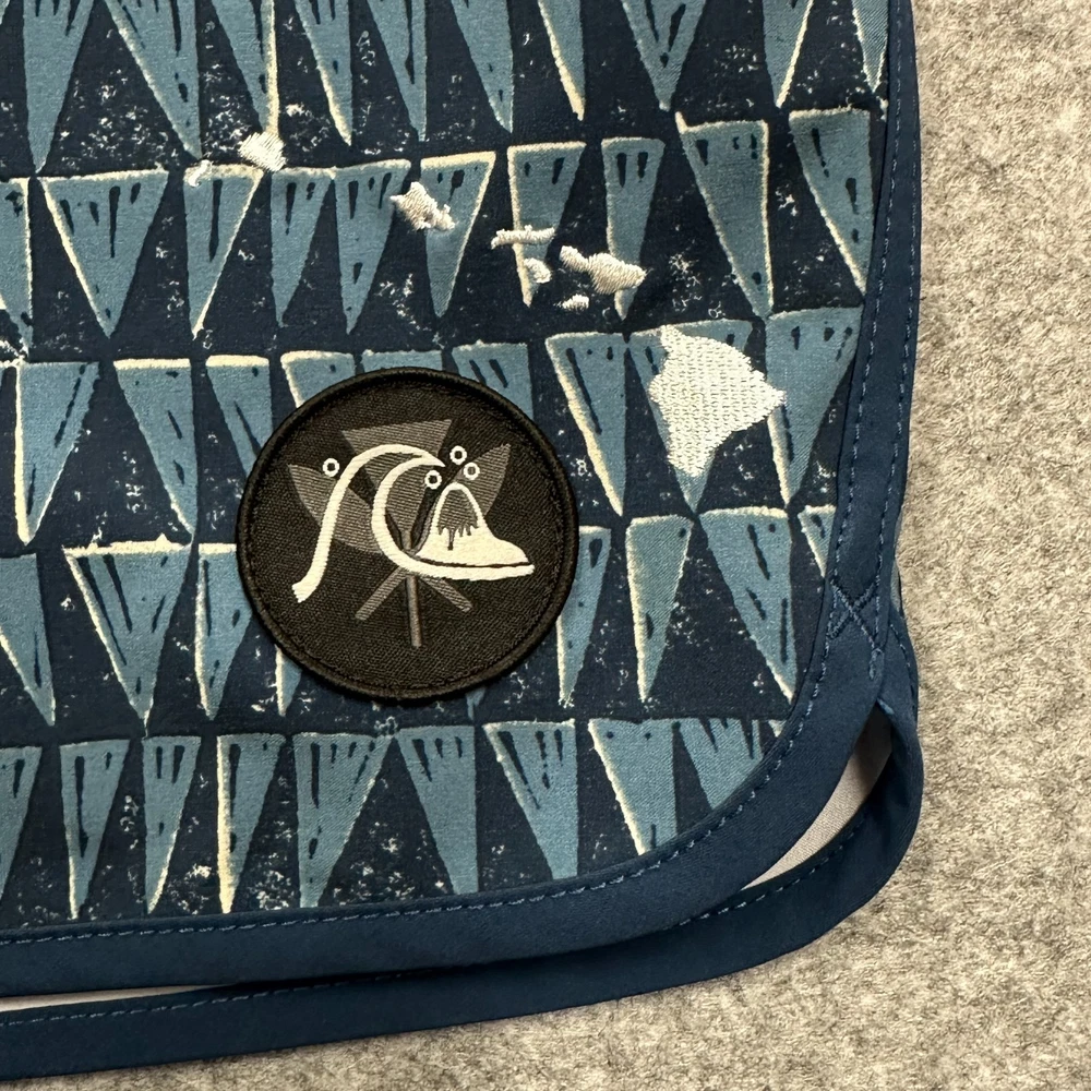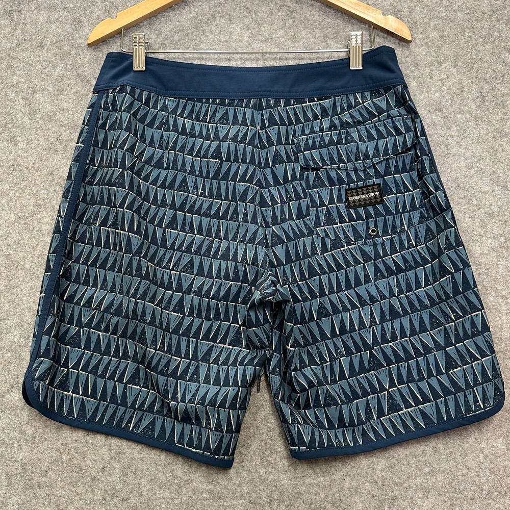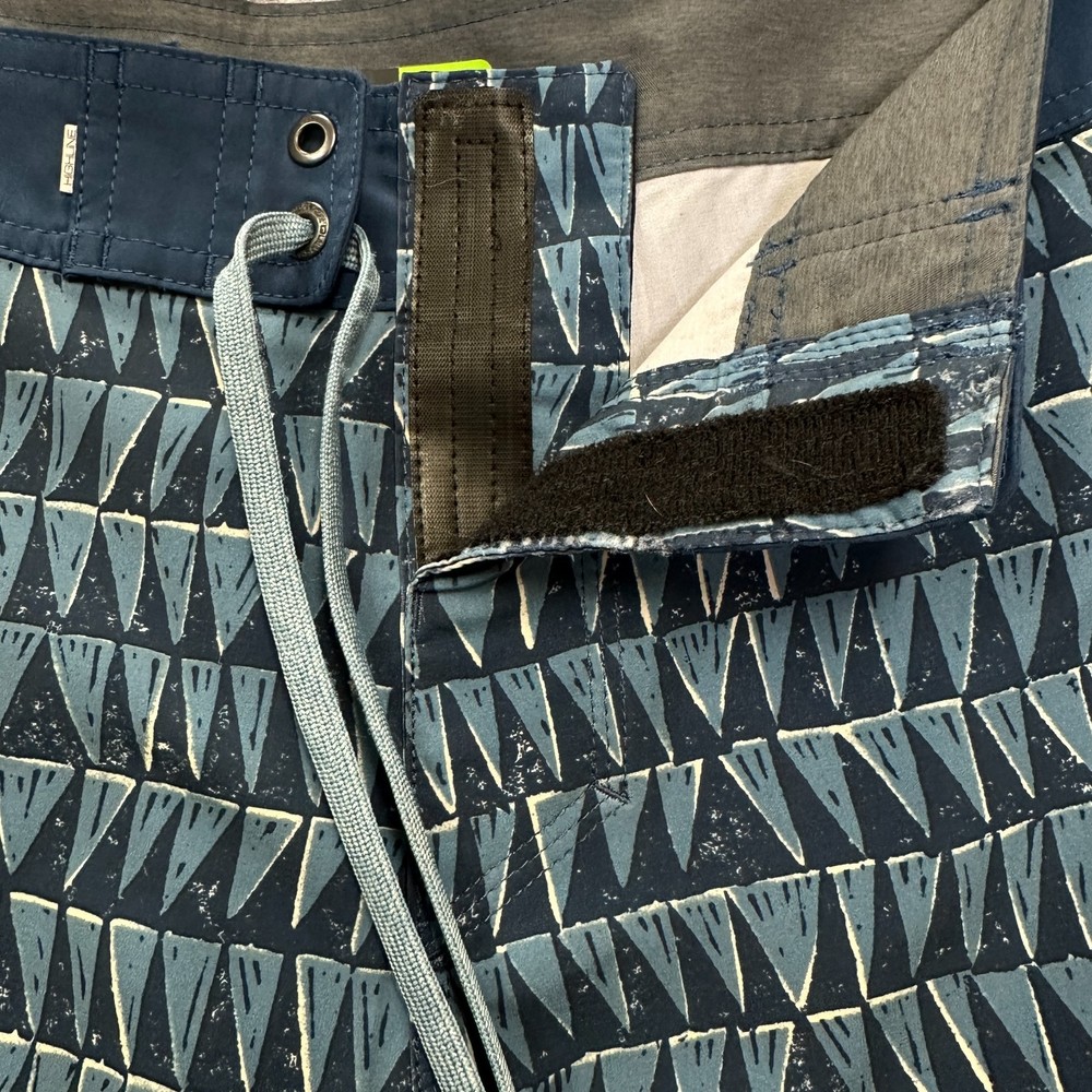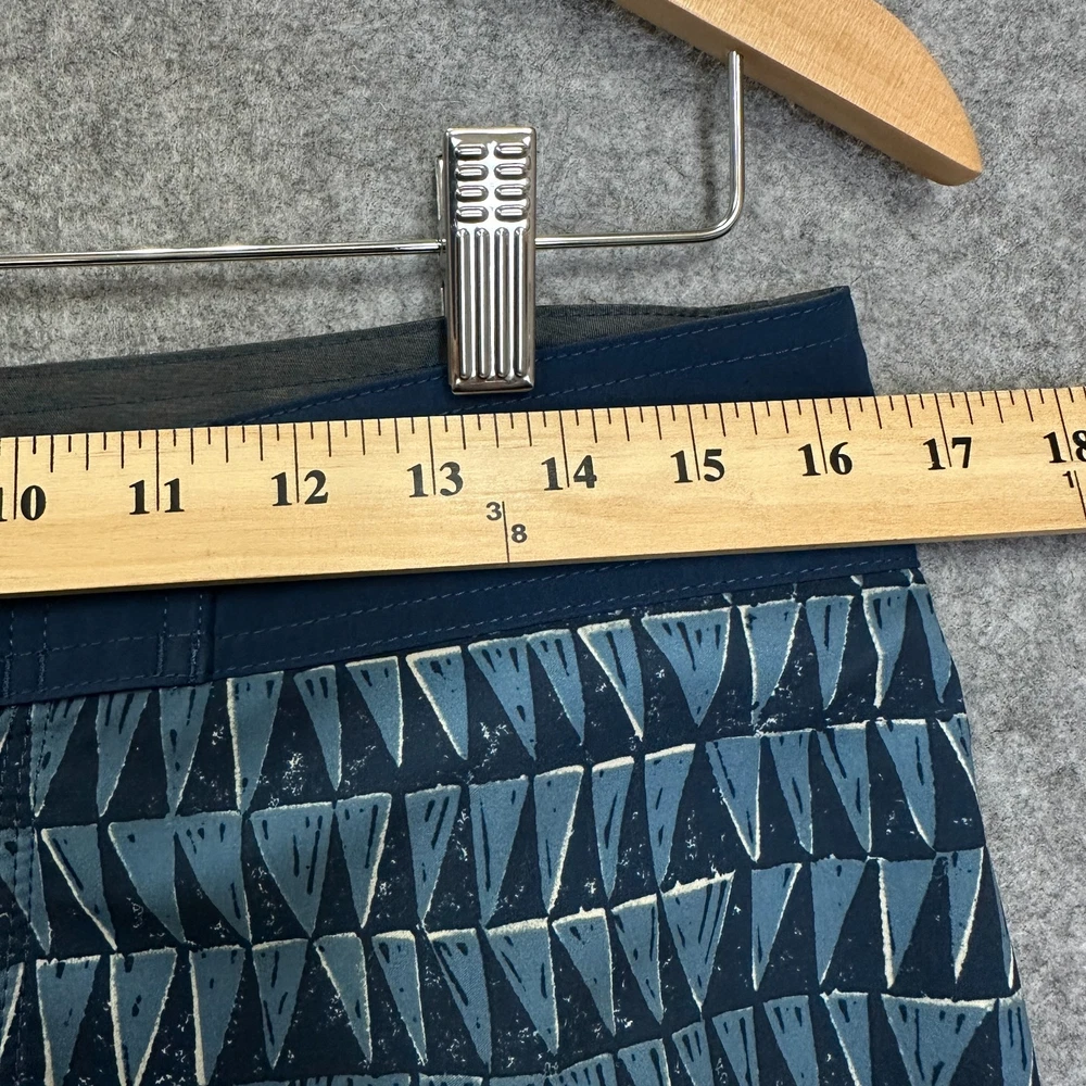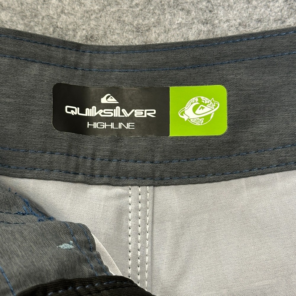 The Quiksilver Highline Boardshorts in a sail shaped geometric pattern are designed in Hawaii by surfers for surfers. Made of stretchy polyester material in a size 30 waist, these 4-way stretch board shorts offer comfort and flexibility in the water. The machine washable blended fabric ensures easy care, while the board shorts style provides a sleek silhouette for surfing performance. Featuring a hook and eye fabric strip plus laceup front closure, a back pocket with sewn in key loop, the Hawaiian islands embroidered near the Quiksilver logo, these shorts are perfect for surfers looking for functional and stylish swimwear. Made in Vietnam, these boardshorts are a must-have for any water sports enthusiast. Please review photo measurements to ensure a good fit. Ships from a smoke free home.
