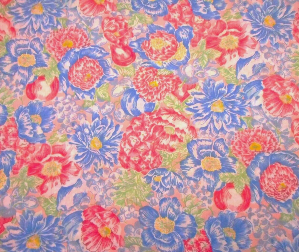 This is a very nice fabric that is 100% cotton. It has pink & blue flowers with yellow & green centers & green leaves on a light pink background. NOTE: The blue flowers are a little darker than the photos. READ: Because computer monitors show colors and shades differently, the fabric colors can vary from the photos. If you have any questions regarding this, please contact me before purchasing the item. I have been a quilter for 30 years and am an accomplished seamstress and would be happy to answer any questions you might have. This is for 1 Yard of fabric. If you purchase more than 1 Yard, I will give you one continuous cut. If you have a problem with anything you purchase from me, please contact me before leaving neutral or negative feedback and I will work it out with you. Payment is due within 48 hours. If payment isn't received within 5 days, it will automatically go to Ebay's resolution center for non-payment. INSTRUCTIONS FOR COMBINED SHIPPING: I Do combine shipping. You must put your items into your shopping cart and request an invoice from me using the request total button before completing the payment process. IF YOU'RE UNABLE TO COMBINE YOUR SHIPPING, PLEASE CONTACT ME. Payment is due upon receipt of your invoice Thank you for looking and God bless you and your family. IF THERE IS A PROBLEM WITH ANY PURCHASE, PLEASE CONTACT ME, THE SELLER, VIA EBAY'S MESSAGING SYSTEM PRIOR TO OPENING A CASE--OPENING A CASE, EVEN IF RESOLVED SMOOTHLY, CAN HURT THE SELLER'S RATINGS. THANK YOU