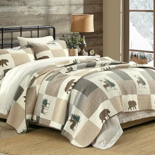 Return Policy Fast Delivery Trusted seller Quilt Queen Size, Queen Quilt Set, 100% Cotton Queen Quilt Bedding Set Bedspreads, Forest Farmhouse Rustic Lightweight Comforter for Queen Bed, All Season, Brown/Gray/Beige, 3-Piece Product Description 100% Natural Cotton: The fabric and filling are made of 100% natural cotton, it is softer and healthier,more breathable and skin-friendly. It is also a good choice for people who are allergic constitution or tend to sweat more when sleeping. Widely Applicable and Decorative: This quilt set of forest farmhouse theme in brown, gray and beige color scheme, both sides are richly designed the same plaid, plant and wildlife patterns, making your room vivid and cozy. This decorative quilt set can easily match the decor of your bedroom, living room, master room, guest room, study, airbnb, dorm and RVs. All-Season Use: The neat and tight stitches ensure long-term use. Three-layer design and the 100% cotton filler inside make this quilt set lightweight but warm, suitable for spring, summer, autumn/fall, winter and can be used as bed blanket, quilt set, coverlet set, bedspread and even comforter set. It can be used alone or be used as one layer of your bed coverings to add extra warmth. 3-Piece Queen Quilt Set Includes: 1 Quilt : 98" x 90" ; 2 Pillow shams : 20" x 28". Care Instruction: Machine Wash separately in cold water, tumble dry low, do not bleach. The quilt will still keep warm and its original shape after washing.If you have pets,the washable quilt is also a good choice. Shipping Returns Payment Shipping Shipping is FREE to all addresses other than APO/PO boxes in the lower 48 states. All our stock ships from US-based warehouses. Shipped via USPS or UPS (depending on location and package weight) Unless stated otherwise, all orders will ship within 24-72 hours of your payment being processed. Check our feedback to see the great reviews of FAST shipping we offer. Returns Seller does not accept returns Payment We currently accept payment via eBay managed payments only. Once payment is cleared, we will dispatch your shipment within 1-3 business days. Please refer to the "Shipping" tab for more information regarding shipping speed to your destination.