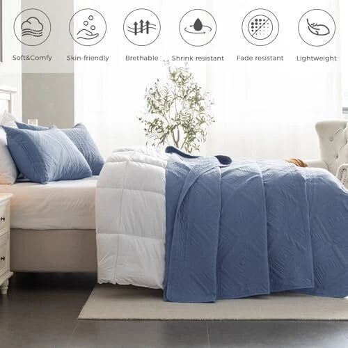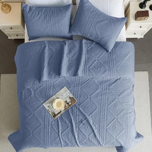 Return Policy Fast Delivery Trusted seller Queen Quilt Blue Quilt Cover Set Queen Size-Soft Bedspread Blue Bedding Coverlet Set for All Seasons, 3 Piece Luxury Thin Comforter,Warm Quilted Blanket with 2 Pillow Shams(Blue,Queen) Product Description Soft and Luxury Quilt Set:The blue quilt sets queen includes 1 quilt (90"x96") and 2 pillow shams (20"x26"). It keeps you warm in the winter and cool in the summer.Our bedspread is incredibly soft and gentle on your skin. Stylish Decoration:The elegant geometric pattern presents a sophisticated and chic look. It's a great present for housewarmings, weddings, birthdays, or any occasion. It is decorative that could be suitable for bedroom, guest room, RV and vocation room Exceptional Quality:This bedspread coverlet is tightly stitched to give you long-lasting comfort and softness.Lightweight, durable bedspread sets are perfect for family with pets or kids. Easy Care:Machine wash cold; gentle cycle; tumble dry low; do not bleach and iron.The quilt set will be more softer after each wash Tips:Because of the vacuum package, the quilt will arrive shriveled and wrinkled, please wash and dry it to puff it and remove the wrinkles.If you want a quilt that drapes to the floor like the picture, please have a low bed or choose a larger size Shipping Returns Payment Shipping Shipping is FREE to all addresses other than APO/PO boxes in the lower 48 states. All our stock ships from US-based warehouses. Shipped via USPS or UPS (depending on location and package weight) Unless stated otherwise, all orders will ship within 24-72 hours of your payment being processed. Check our feedback to see the great reviews of FAST shipping we offer. Returns Seller does not accept returns Payment We currently accept payment via eBay managed payments only. Once payment is cleared, we will dispatch your shipment within 1-3 business days. Please refer to the "Shipping" tab for more information regarding shipping speed to your destination.