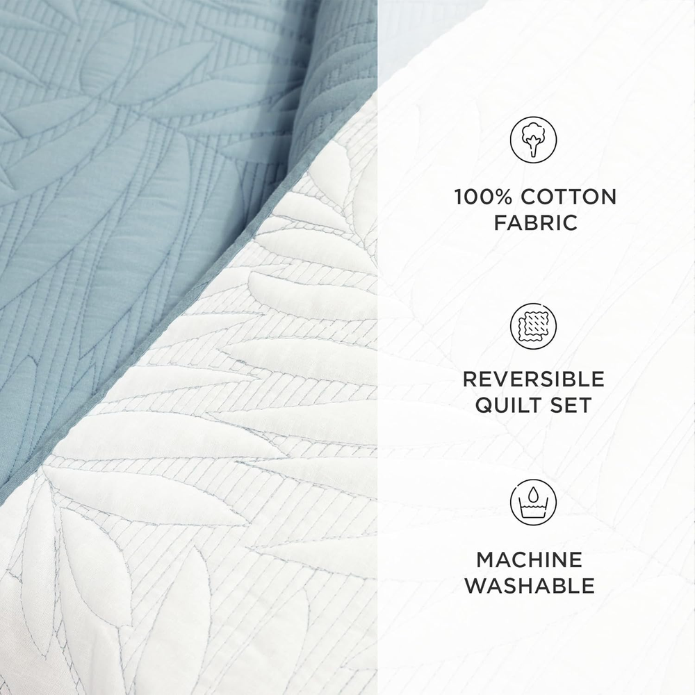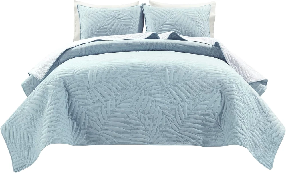 $ 24.26- Queen Quilt Set, Cotton Reversible Bedding with Matching Shams, Bedroom Decor