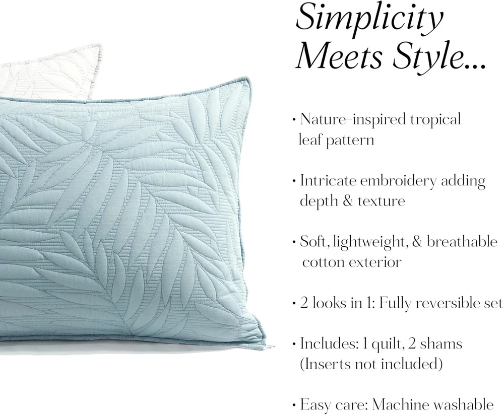Menu Other Items Feedbacks About Us Contact Us Add To Favorites - Quilt Set, 3-Piece Reversible Cotton Bedding with Matching Shams, Embroidered Leaf Design (Isla Blue/White, Full/Queen) 100% Cotton LUSH DECOR: From humble beginnings to a beloved brand, our goal has always been to inspire and empower people to create homes that are not only beautiful but also expressive of their individuality. Our story is one of passion, innovation, and a relentless pursuit of beauty and comfort in every home. INCLUDES: (1) Full/Queen Quilt, (2) Pillow Shams SUPER SOFT BEDDING: Constructed of quality Cotton, the inviting feel offers pure comfort that people adore. EASY CARE: For effortless care, this bedding set is designed to be easily removed and machine washed on a delicate setting. VISIT OUR BRAND STORE: Explore a wide range of home decor essentials that will suit your everyday needs. From duvet sets to baby bedding, our brand store offers all. “Life. Inspired.” reflects our belief that an inspiring home leads to an inspired life. At Lush Decor, with our expertise and our dedication, we are able to blend fabrics into creations that spark magic, inspiring you to create your dream home. We believe your home should be a source of personal expression and joy. For this reason, our goal is to create, wherever it may be, a magical home, full of dreams, full of life. In short, inspired by life. Or simply, Life. Inspired. Item Specification Item model number 194938074308 Included Components Pillow Sham, Quilt Style Traditional Color Isla Blue/White Pattern Floral Material Cotton Fabric Type 100% Cotton Item Weight 4.64 pounds Batteries required No Theme Solid Size Full/Queen Package Dimensions 16.5 x 13 x 6.3 inches Product Care Instructions Machine Wash Number of Pieces 3 FREE SHIPPING We are always working hard to ensure your package arrives as soon as possible. Please understand that some factors like weather, high postal traffic, and the performance of shipping companies are outside of our control. We offer free shipping to the lower 48 states. We do not accept P.O. Boxes. Please provide a physical address. If you have a problem or question regarding your transaction please contact us immediately. We will work with you to resolve any problem you may have. Thank you