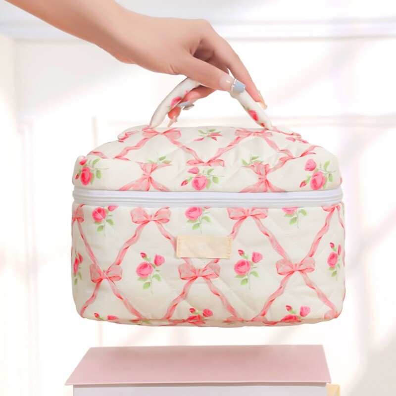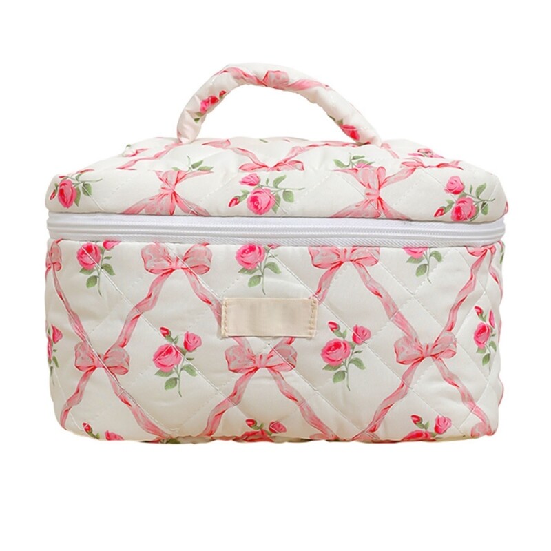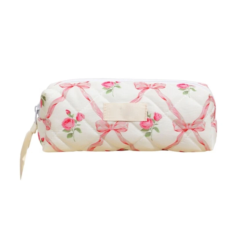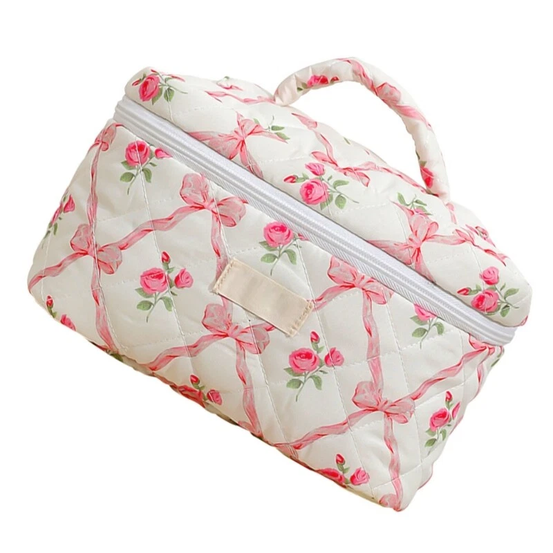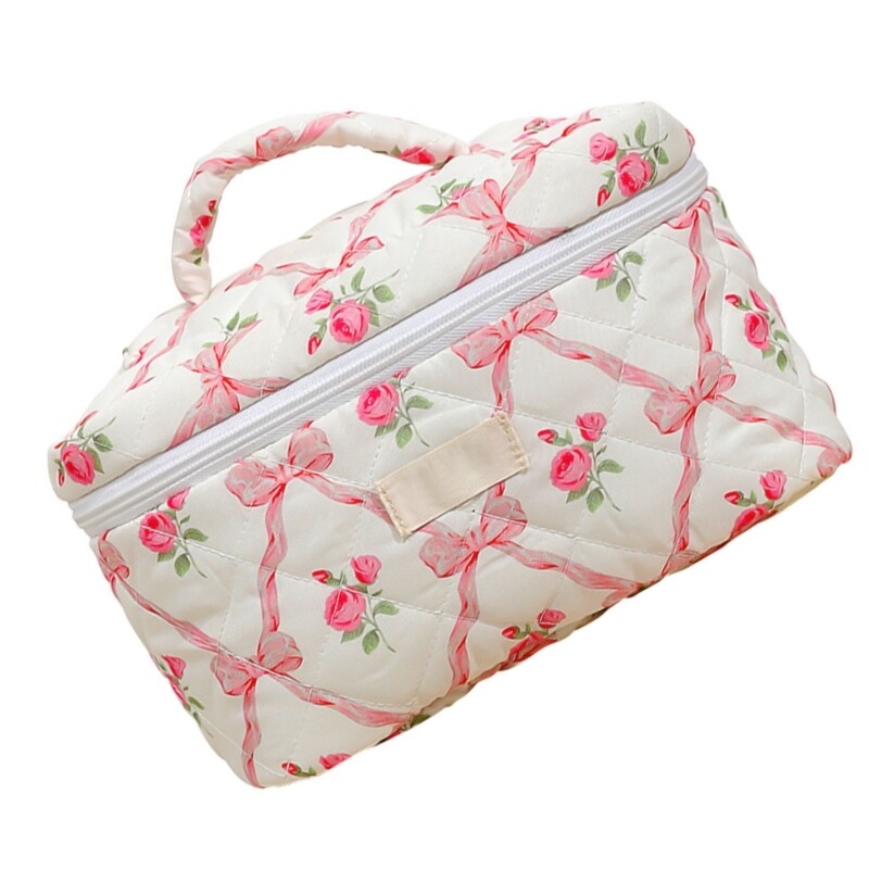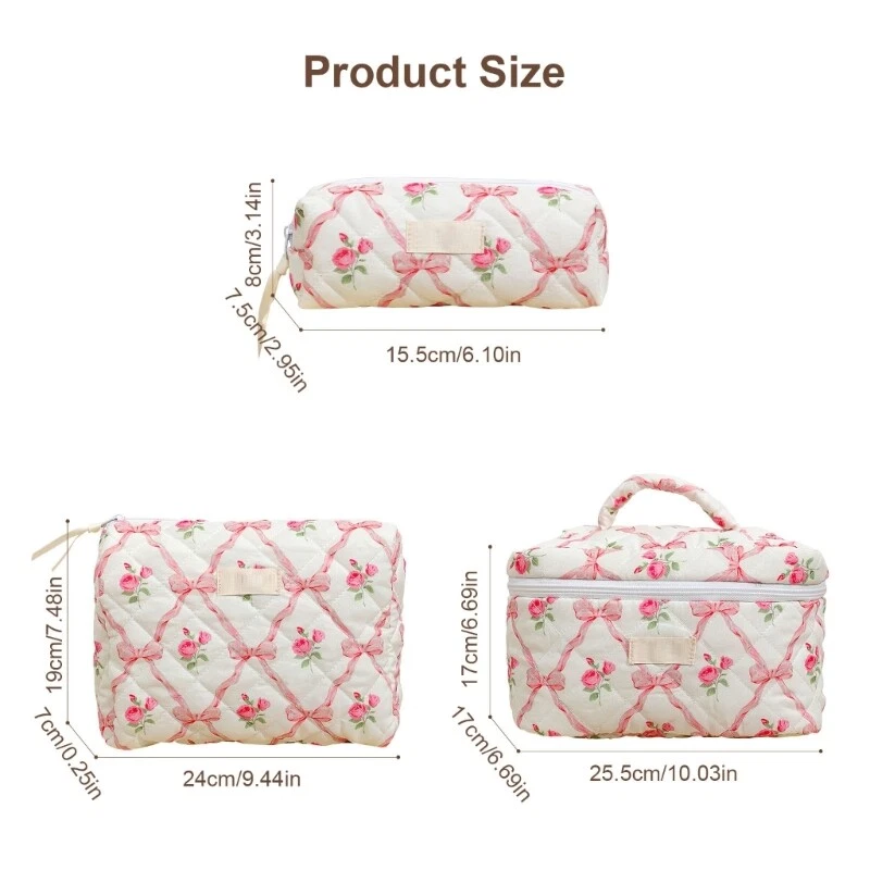 Features: Quilted makeup bag offer space to store all your makeup essential, toiletries, and so on. Large capacity cosmetic bag allowes you to keep your care item organized and easily accessible. Travel makeup bag is convenient, very suitable for storage of cosmetics in suitcases and easy to carry. Convenient to carry your belongings, great for travel and daily use. Lovely bows toiletry bag is great for storing your cosmetics such as lotion, eyeshadow, brush, mascara, eyeliner and other small item. Specifications: Component: Cotton Size: As the Picture Show Type: 3 Kinds Optional Package Includes: 1 Pc Makeup Bag note: Please allow 1-3cm errors due to manual measurement. Due to the difference betweeen different monitors,the picture may not reflect the actual color of the item.