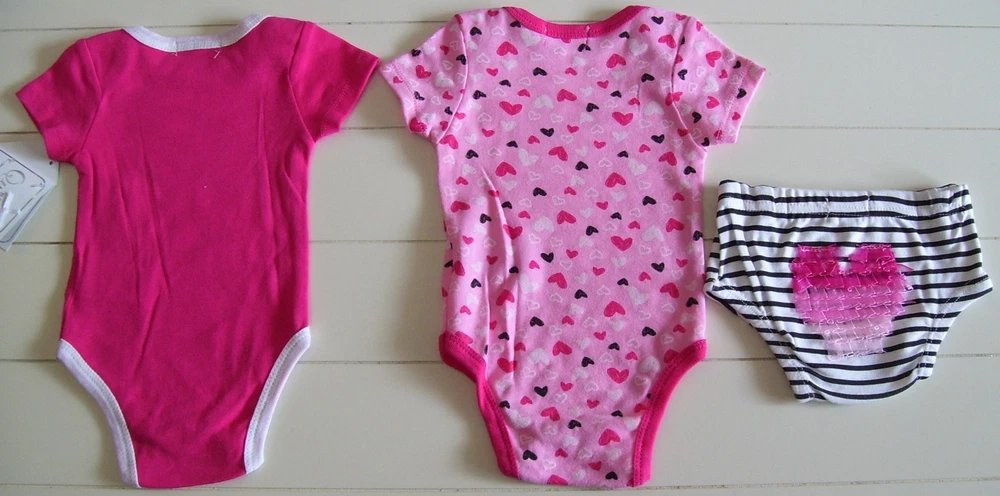 Baby Girls Quiltex 3 Pc Layette set. 2 bodysuits and diaper cover. Size 3-6 Months. New with tags. Weight: 13-15 pounds Height: 24-26 inches Smoke and Pet free home. Winning bidder to pay within 3 days listing end. Check out my other listings for more great deals! RETURN POLICY DETAILS Returns are accepted with prior approval ONLY if item is misrepresented in the listing. You must contact me first before returning an item. I do NOT accept returns for buyer choosing the wrong size/item not fitting. There are NO returns/refunds on pageant and special occasion wear.