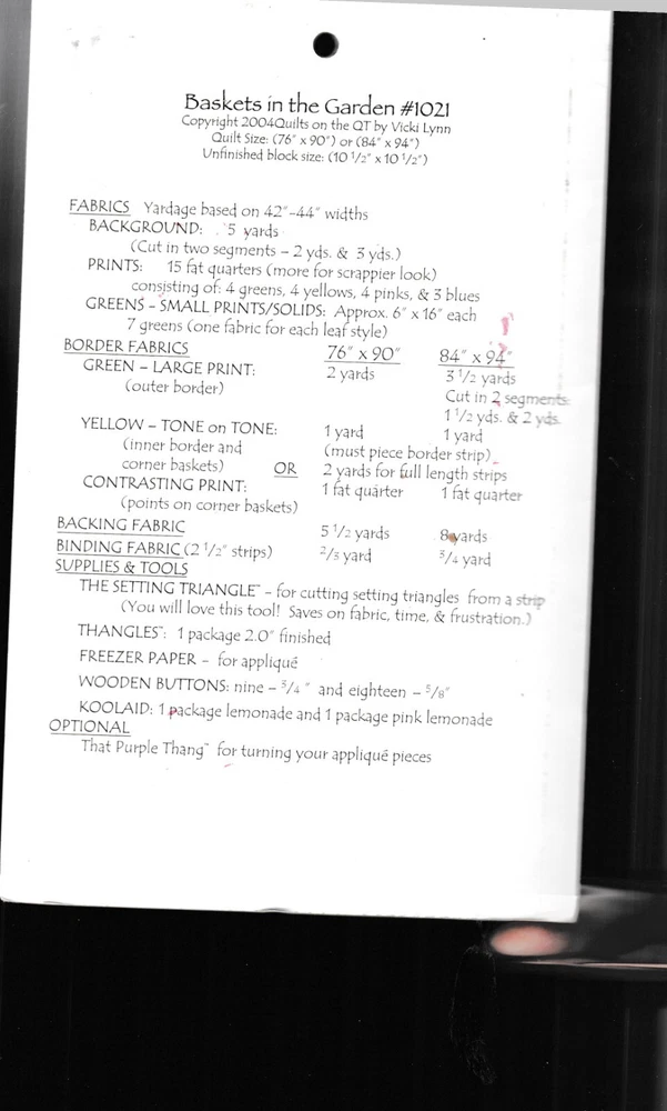 Quilts on the QT Quilting Pattern 1021 Baskets In The Garden 76 x 90'' or 84'' x 94'' Combined shipping is automatically added on at time of purchase for multi purchases. International buyers are responsible for paying their VAT taxes not the seller.