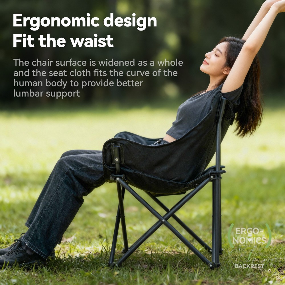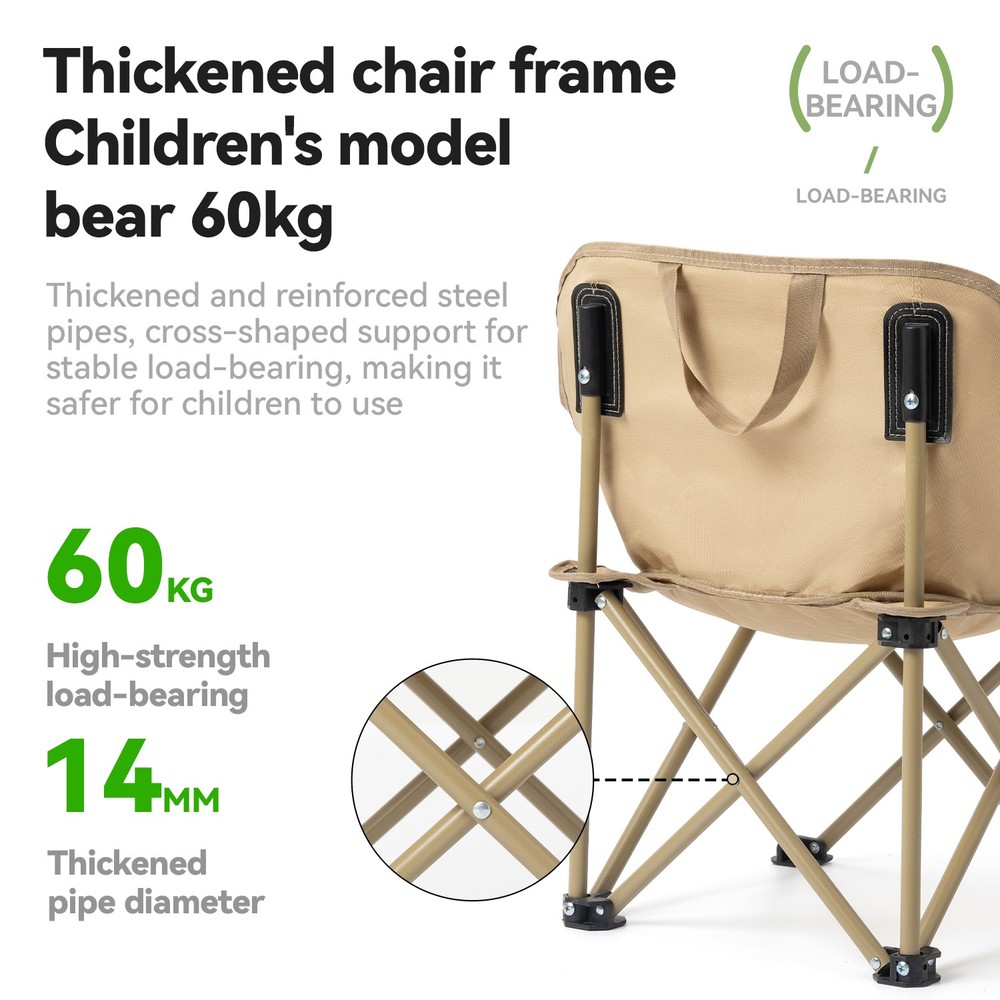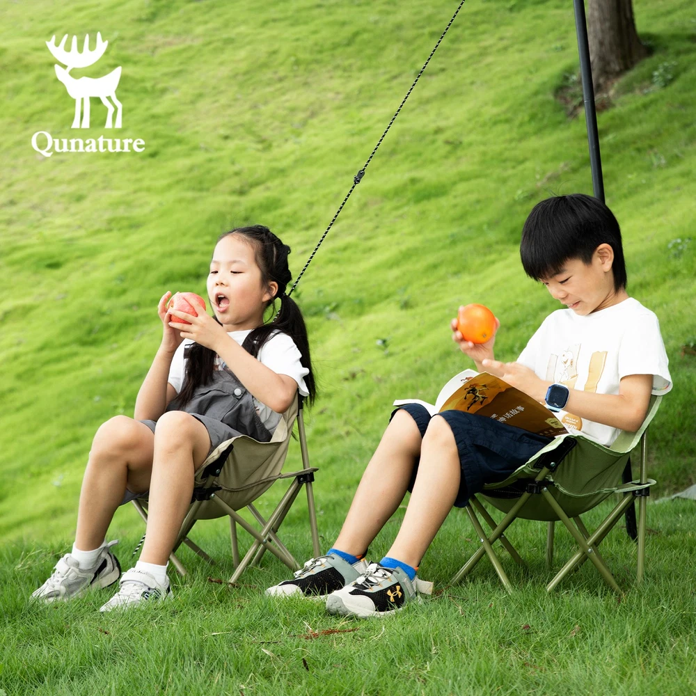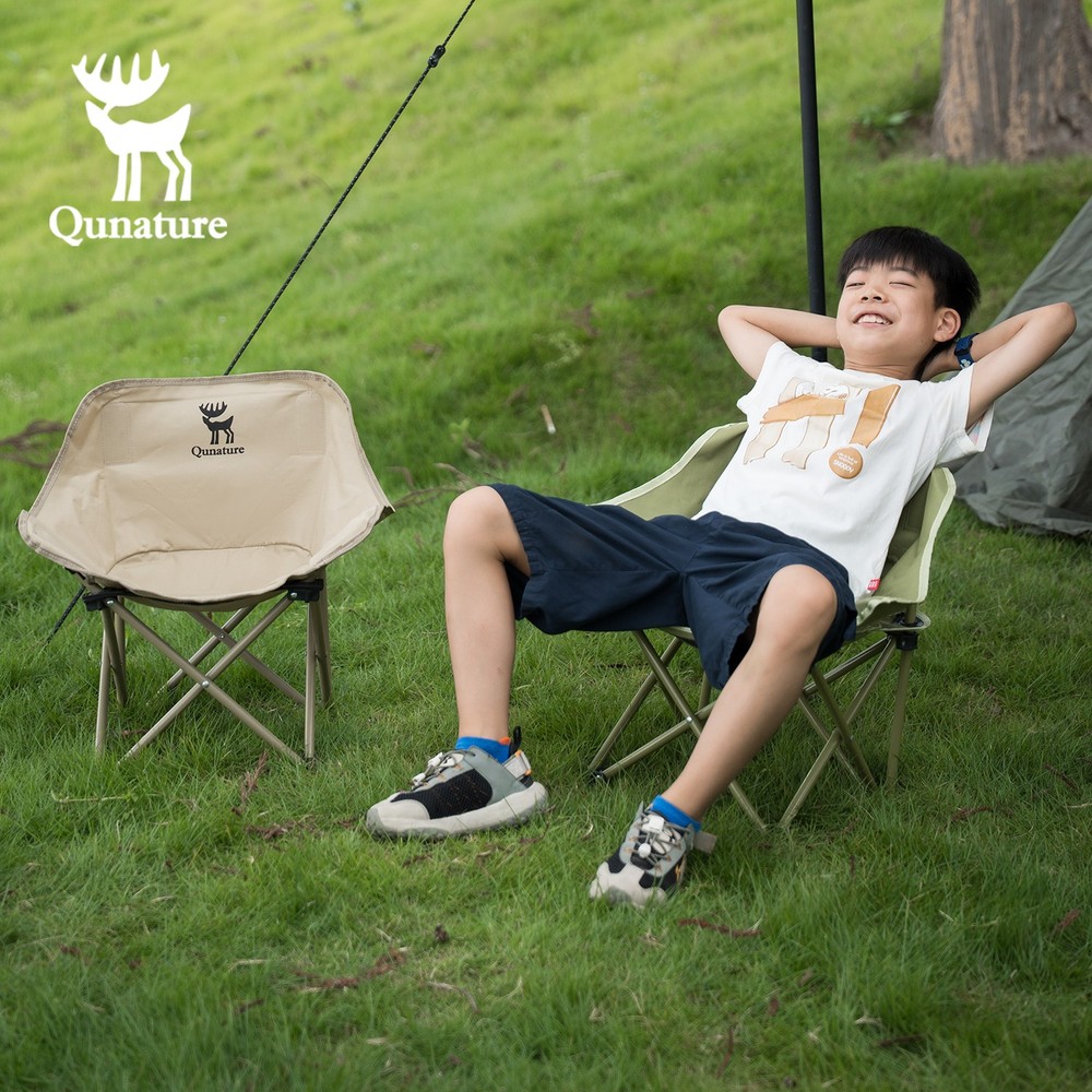 Product Information Brand:Qunature Name:Outdoor portable folding moon chair Material:600D Oxford cloth + Carbon steel + Plastic Color:Adult model:Black/Khaki,Child model:Winter bamboo green/Khaki Load-bearing:Adult model-120kg,Child model-60kg Weight:Adult model-2kg,Child model-1kg Product features. 1、 The chair surface is widened as a whole and the seat cloth fits the curve of the human body to provide better lumbar support 2、Thickened and reinforced steel pipes cross-shaped support for stable load-bearing, making it safer for children to use 3、High-strength oad-bearing,Thickened pipe diameter 4、Quickly gather& store Travel more convenient,No need for tools to install expand and sit, fast storage 5、 Large-capacity storage pockets on the sides and backrest for easy storage of belongings
