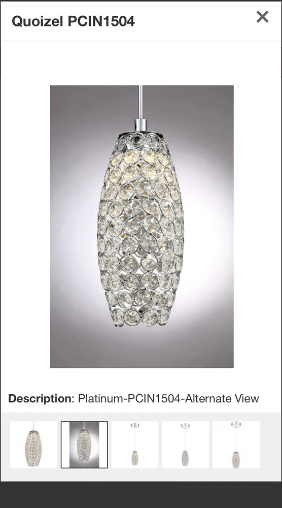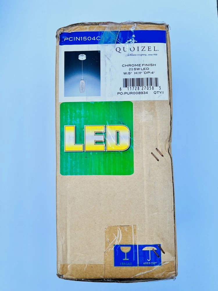 Quoizel Infinity Single Light 4" Wide Low Voltage LED Pendant. Includes clear crystal shade Metal and crystal construction Includes clear crystal accents Includes (1) 4.5 watt Integrated LED module Includes 96" of hanging cord Fixture is capable of being dimmed with appropriate dimmer switch Rated for installation and use in dry locations 3 year manufacturer warranty on finish 10 year manufacturer warranty on electrical components Dimensions: Height: 11" Width: 4" Depth: 4" Product Weight: 2.2 lbs Wire Length: 96" Canopy Height: 1.5" Canopy Width: 5" Shade Height: 8.25" Shade Diameter: 2.25" Electrical Specifications: Number of Bulbs: 1 Bulb Included: Yes Bulb Base: Integrated LED Bulb Type: LED Wattage: 4.5w Watts Per Bulb: 4.5w Voltage: 12v Color Temperature: 3000K Color Rendering Index (CRI): 90 Lumens: 450