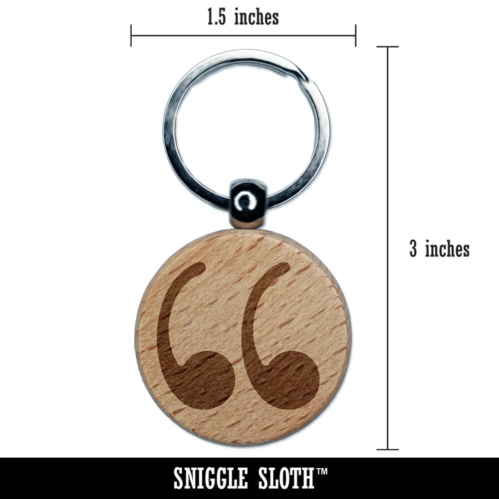 Quotation Marks Engraved Wood Round Keychain Tag Charm