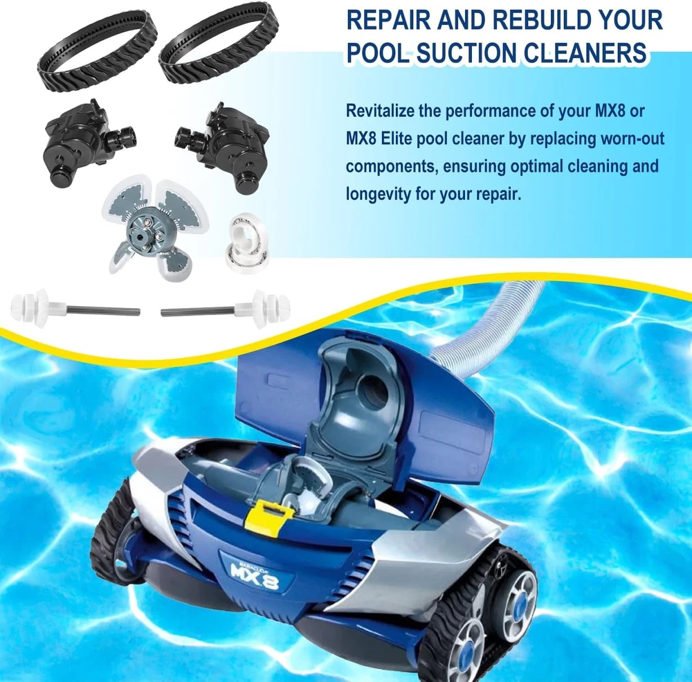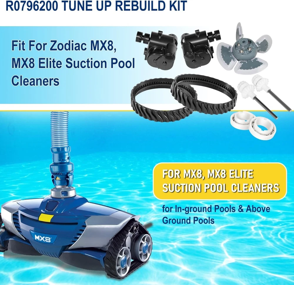 R0796200 Tune Up Rebuild Kit for Zodiac Baracuda MX8 & MX8 Elite Pool Cleaners Compatible with MX8/MX8EL Pool Cleaners: This maintenance kit is specifically designed for Zodiac MX8 and MX8EL pool cleaners, ensuring perfect fit and compatibility with these models. Whether for older or newer units, it guarantees optimal performance and efficiency. Complete Kit with All Essential Components: Includes everything needed for a thorough maintenance: MX8/MX8EL Engine Assembly (Model R0524900), 2 high-durability drive shafts (Model R0525100), 2 tracks (Model R0526100), 2 precision bearings (Model R0527000), Directional Control Devices A (Model R0524700) and B (Model R0524800), covering all critical parts for full upkeep. Enhanced Cleaning Efficiency: The kit features a flexible power turbine and expertly designed directional control devices, improving water flow control and cleaning paths. This results in a more effective cleaning process, ensuring your pool stays sparkling clean. Extended Equipment Lifespan: Regular replacement of key components such as tracks and drive shafts helps prolong the life of your pool cleaner, reducing the need for frequent repairs and associated maintenance costs. High-Durable Materials for Various Environments: Made from high-quality, wear-resistant materials, this kit is built to perform in diverse water conditions. It stands up to the challenges of both high-chemical indoor pools and sun-exposed outdoor pools, providing reliable and long-lasting support. User-Friendly DIY Installation: Designed for ease of use, this kit allows for straightforward installation without requiring professional tools. The pre-assembled parts make it easy for users to complete maintenance tasks efficiently, even if they’re new to DIY repairs. Cost-Effective Replacement Solution: Offering high-quality components at a more affordable price compared to original manufacturer parts, this kit provides a cost-effective way to maintain your pool cleaner without compromising on performance. Versatile for Different Pool Types: Suitable for a range of pool types and conditions, from residential to commercial pools and varying water temperatures. This maintenance kit ensures that your MX8 and MX8EL pool cleaners operate smoothly and effectively in any setting. Payment Delivery details Terms of sales Contact us Payment Orders will be ship out within 1-3 business days after payment has cleared. Delivery details Orders from Saturdays, Sundays or holidays will process on next business day and will be ship within 24 hours. Some shipments could take longer subject to your local customs authorities. We only ship to confirmed ebay addresses. Your ebay address MUST MATCH your Shipping address Terms of sales We accept 60 days return guarantee for all Items If you are unsatisfied with something you bought from us, you may send it back within 60 days of receipt, and we shall be happy to exchange or refund. Contact us If you have any question, please email contact me, we can solve all the problem. Brand Unbranded Type R0796200 Tune Up Rebuild Replacement Parts Set Includes Engine Assembly, Direction Control Device Kit, Tracks, Drive Shaft Assembly, Wheel Track, Bearings Material Plastic, Rubber Compatible Brand For BARACUDA, For Zodiac MPN R0796200 Compatible Model for Zodiac Baracuda MX8/MX8EL Elite Pool Cleaner Suitable For Above Ground Pools, In Ground Pools Model for Zodiac Baracuda MX8/MX8EL Elite Pool Cleaner Water Type All Water Types Installation Area Pool Floor