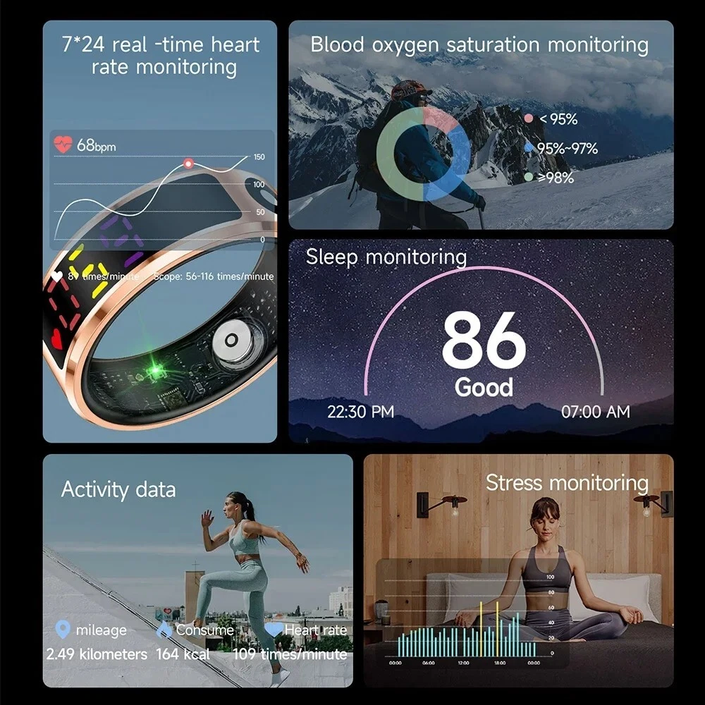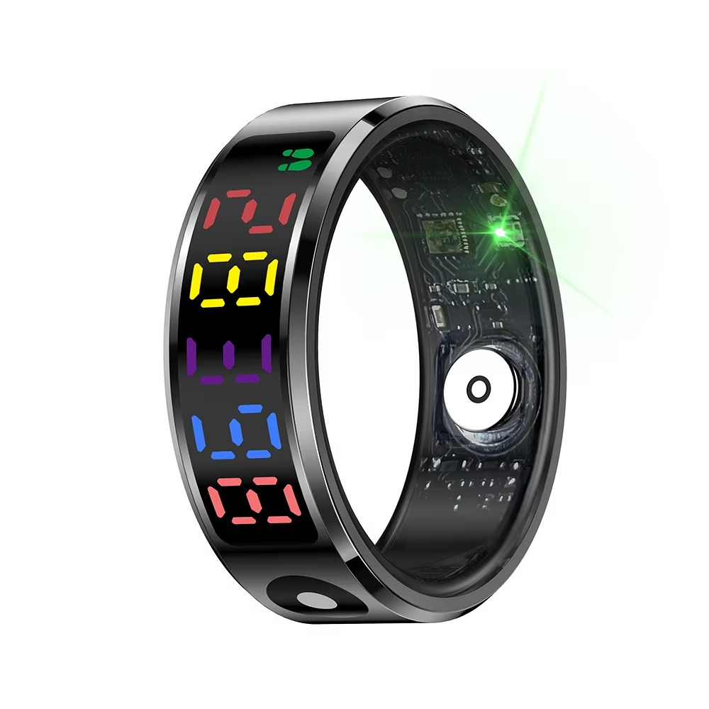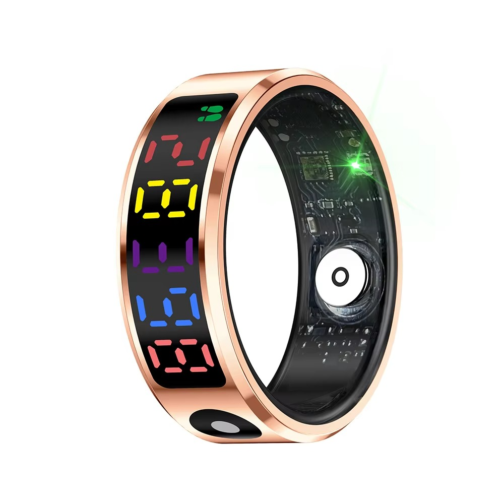 Elevate your tech style with the R12 Color Screen Fashion Smart Ring. This sophisticated accessory doubles as a fitness tracker, putting the health and style at your fingertips. Crafted from durable stainless steel, it's available in sleek silver, gold, or black to complement any look or occasion.Designed for the modern individual, the smart ring boasts an IP68 5ATM waterproof rating, making it a versatile companion for all your activities. Unisex by nature, it suits anyone looking to stay connected and on trend. Whether you're tracking your fitness goals or managing notifications, this smart ring is a stylish and functional choice for the tech-savvy person.