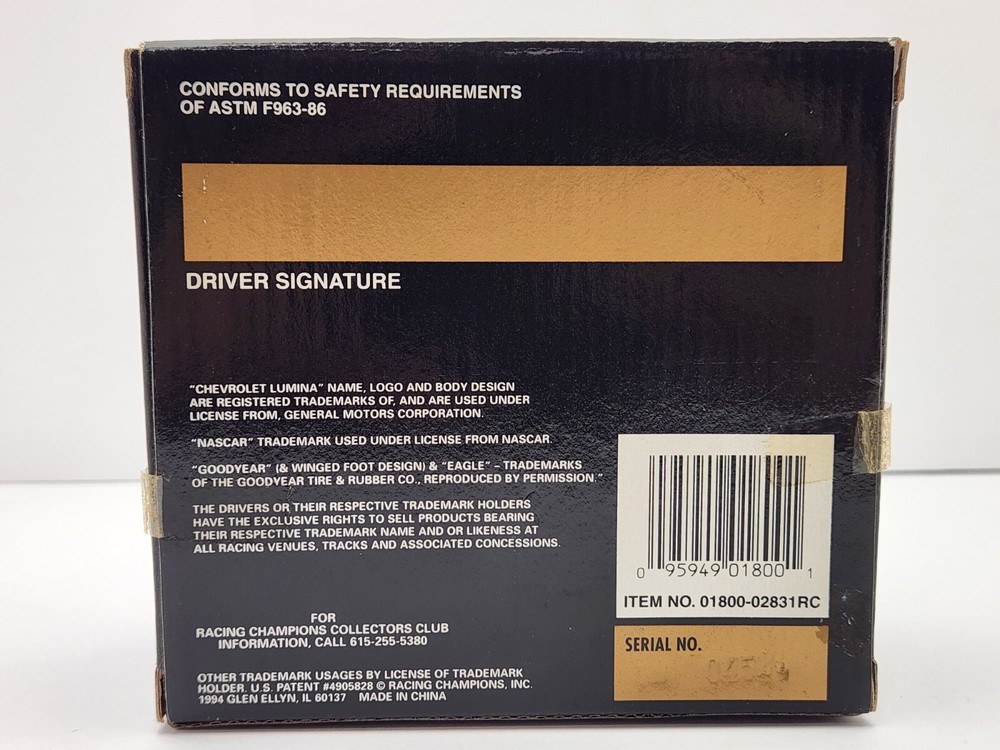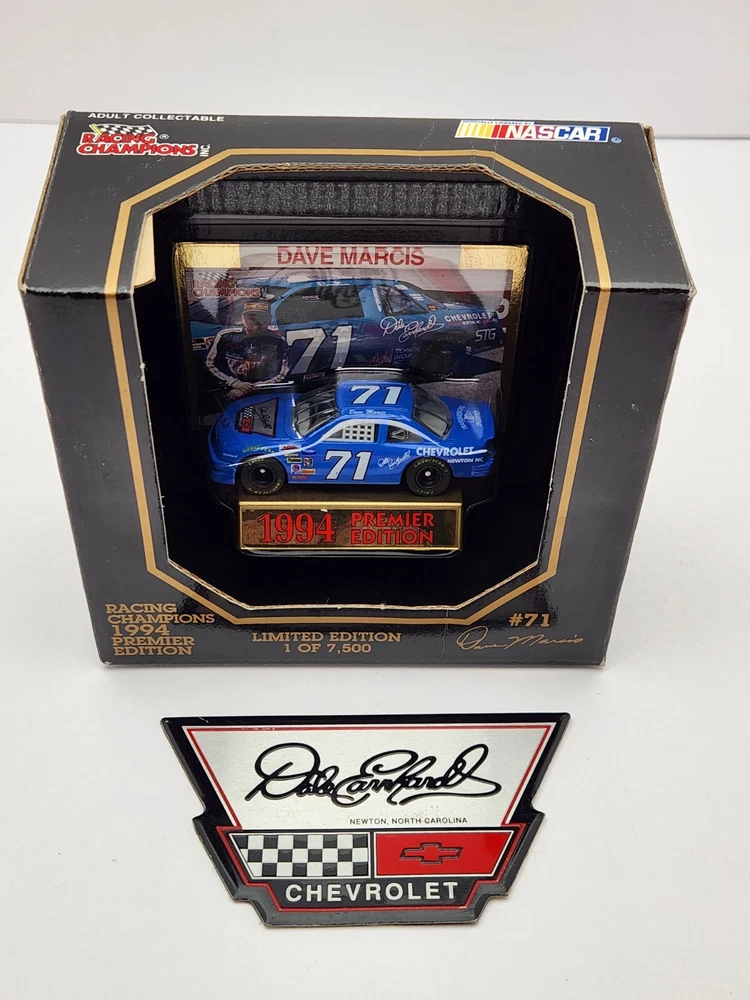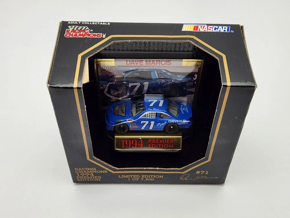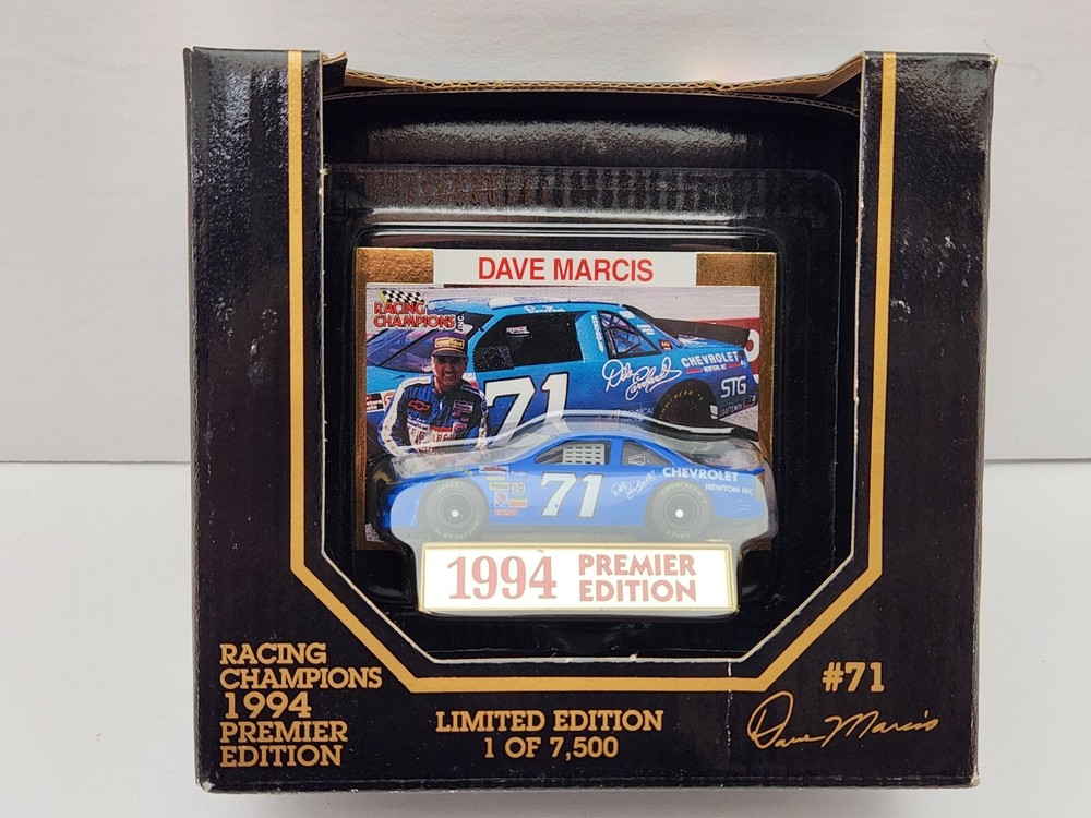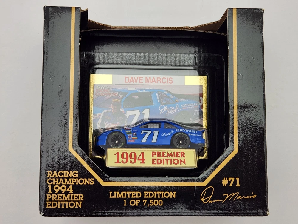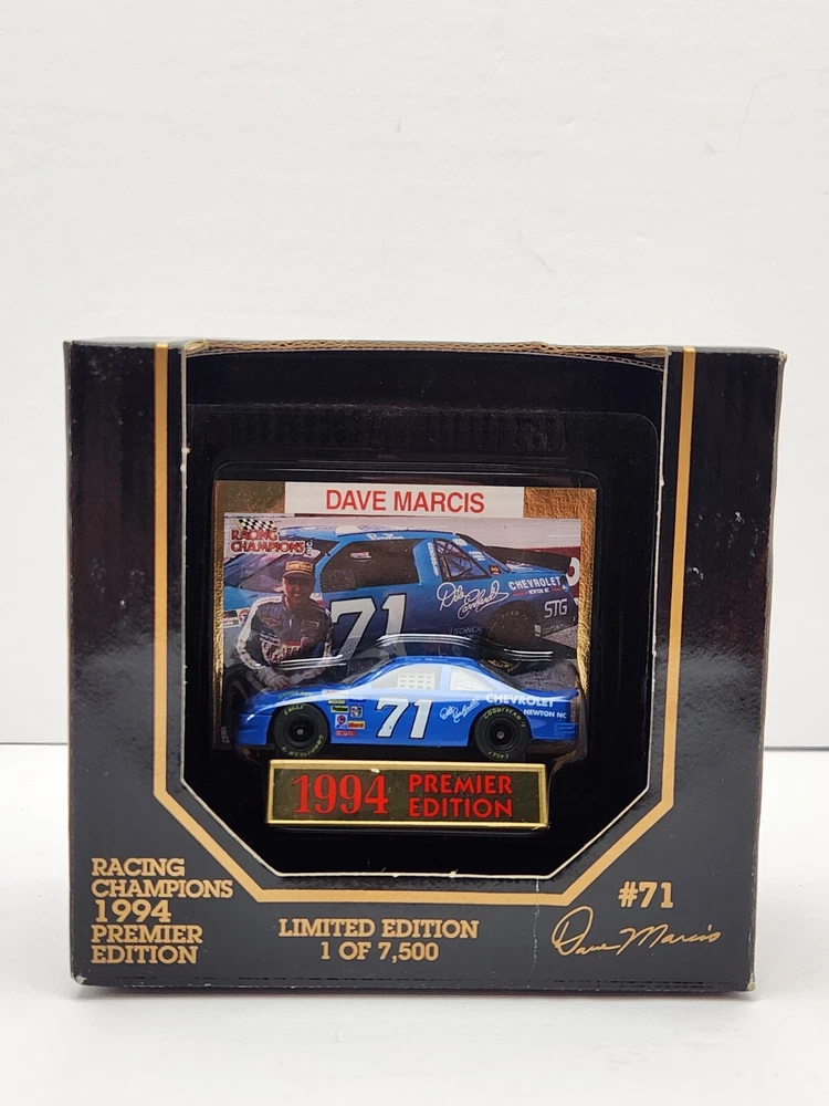 Driver: Dave Marcis Model: Premier Edition UPC: 095949018001 Brand: Racing Champions Scale: 1:64 Racing Team: Marcis Auto Racing Officially Licensed by: NASCAR Race series: NASCAR Color: Blue Car Vintage: Yes gtin13: 095949018001 NOTE:: Dave Marcis Car comes w/ Dale Earnhardt Chevrolet Emblem Decal Theme: Dale Earnhardt Chevrolet Organization: NASCAR Recommended Age Range: Adult Collectible Add Value: Dale Earnhardt Chevrolet Emblem Decal Vehicle Type: Stock Car Racing Type: Stock Car Racing Country/Region of Manufacture: China Series: Racing Champions Premier Edition Material: Diecast Sponsor: Vehicle Year: 1994 Character Family: Racing Champions Vehicle Brand: Chevrolet Serial Number: 04529 Features: 2 pc. Rubber Tires, Die-Cast Bodys & Chassis, Each Package Individually Numbered, Exclusive Gold Embossed Collectors Card, Fully Detailed Interior, Limited Edition 1 of 7,500, With Car Stand Vehicle Make: Chevrolet Lumina Scale (Die-Cast): 1:64