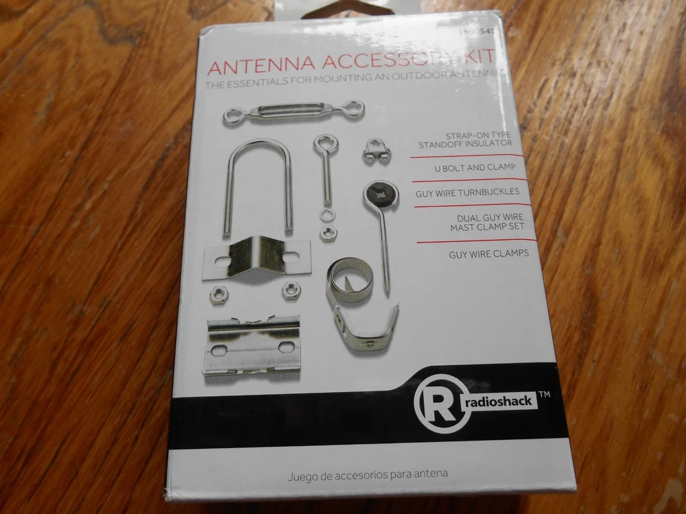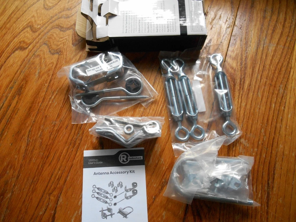 This Radio9 Shack antenna mounting kit is new. This has, strap-on type standoff insulator adjustable for mast size up to 3 inches in diameter. U bolts and clamp for mast up to 1 1/4 inches in diameter. Guy wire turnbuckles, dual guy wire mast clamp set and guy wire clamps of 1/8 inche cable. number on box 1500541. Buyer to pay shipping from 48111. Will print shipping label with eBay and you will have a tracking confirmation #. Check out my other listings. We do not ship international which includes Canada. Thanks for looking.