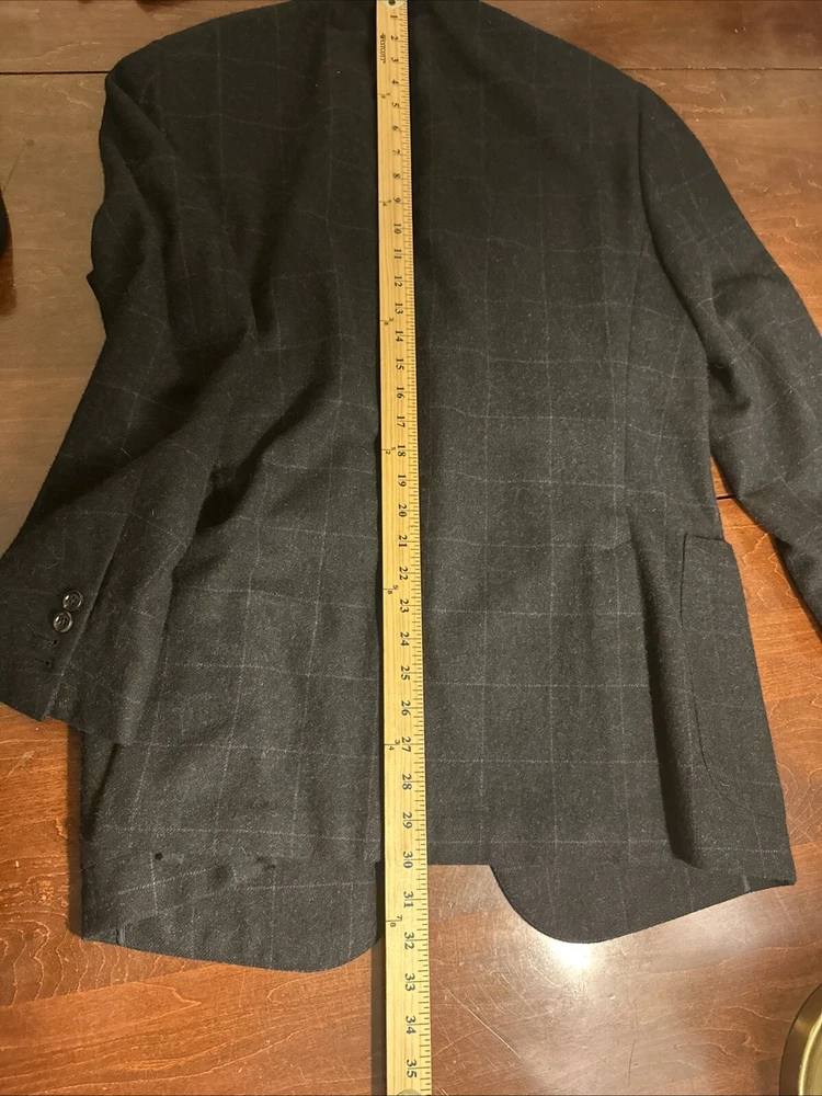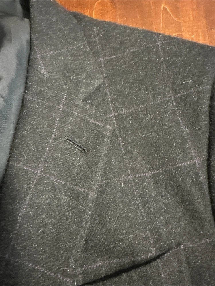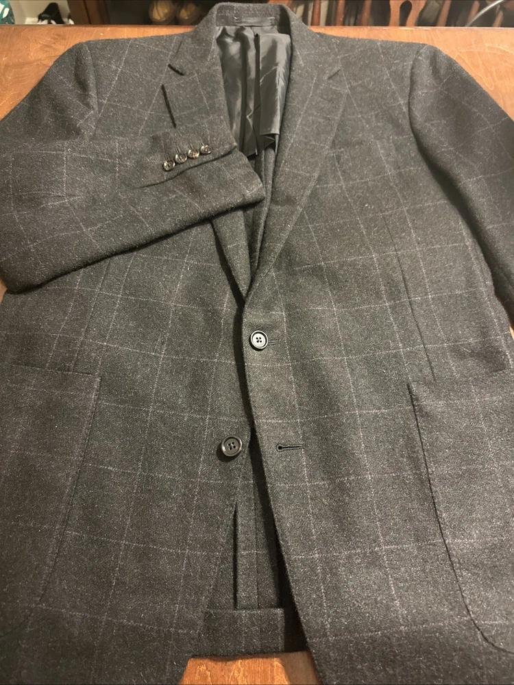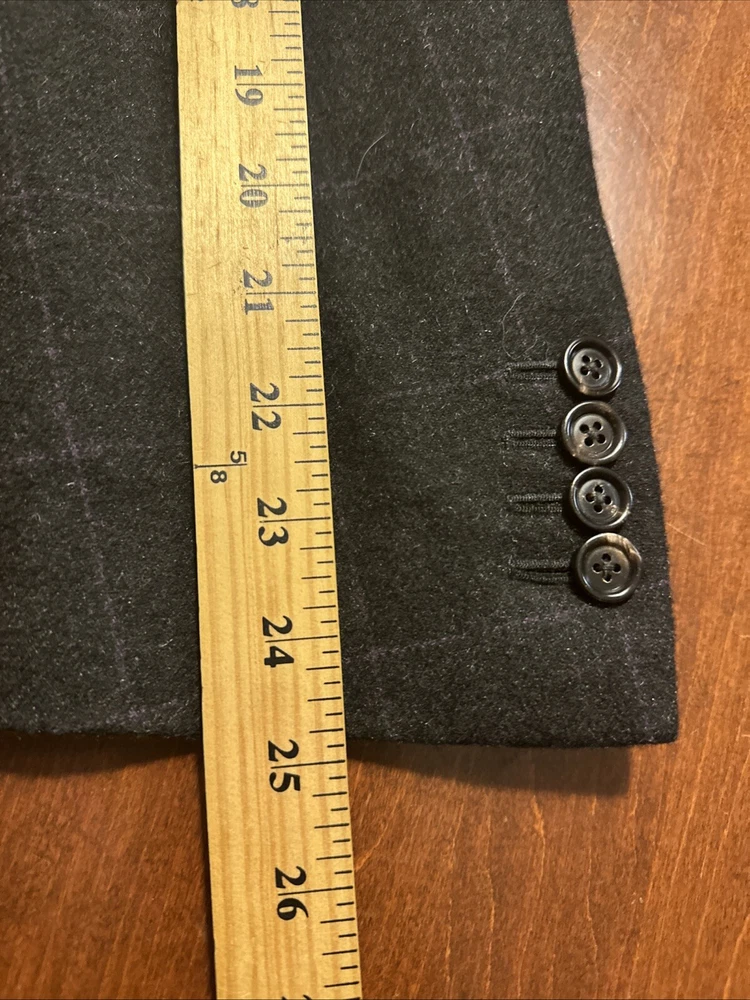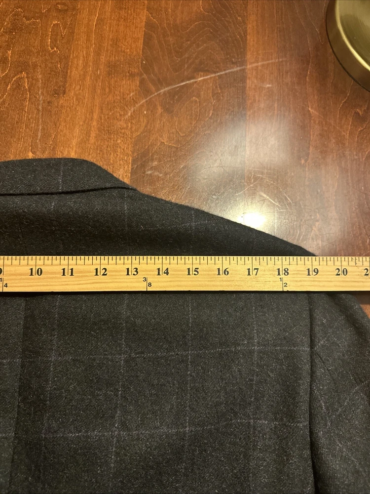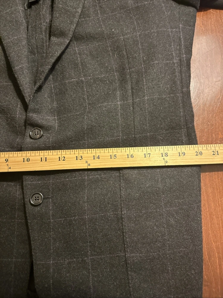 Preowned in excellent condition Ralph Lauren purple label 100% cashmere sport jacket suit, blazer 42R Black in window pane pattern UnStructured Measurements are photographed Sleeve length measured from shoulder seem 25 inches Armpit armpit 21 inches Jacket waist 20 inches Jacket length measured from bottom of collar, 30 inches Shoulder to shoulder 19 inches