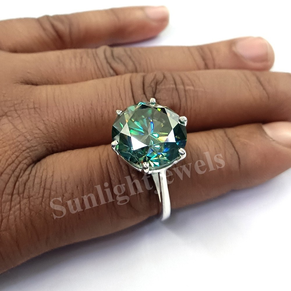 ALL ITEMS WILL BE DELIVERED WITHOUT PAYING ANY TARIFFS, CUSTOM DUTIES ETC. BY YOU. BEAUTIFUL DESIGN! LATEST COLLECTION! Diamond Color - Blue Shape - Round Brilliant Cut Approx. Size of Diamond - 15 mm Approx. Weight of Diamond - 10.80 Carat Origin of Diamond - Brazil Species - Earth Mined Treated - HPHT Cut - Excellent Clarity - VVs1 Size of Ring – US 7 is default size - (Can be resized for additional $ 20.00 or default will be shipped) https://www.ebay.com/itm/404196768619 You can pay for resizing from the following link: Please copy and paste the above link in your browser Metal - Stamped 925 solid Sterling Silver Finish - White Gold CERTIFICATE OF AUTHENTICITY PROVIDED This diamond ring is handcrafted with utmost care. Would make an ideal gift for someone special. The diamond has excellent cut and luster. Comes in attractive packaging. Shipping : Shipping is by USPS/SPEEDPOST/DHL or similar shipping agencies to reach you in 9-12 business days after processing the order. Tracking is provided. For USPS the tracking will show up in transit after 7-9 days once it reaches US from India. Please note: Jewelry items can take up to 10-12business days to process to take care of ring sizing if any, polishing, finishing , packing and handling, certification, documentation etc. Shipping Charges include eBay fees on Shipping, packaging, certification costs, manpower costs, overheads, taxes etc. IN addition to actual courier/postal expenses which have increased substantially as a result of pandemic. We do not artificially increase the price of the products to include shipping charges but only charge what shipping actually costs us. Combined Shipping: Combined shipping discount is available up to 5 (Five)items in an order to be purchased within 5 days. You can continue to buy- Any additional items above 5 in quantity will be considered a new order. This is to avoid pilferage en-route as well as to ensure that you are happy with the merchandise. Once you have received their items you may buy additional items again. This limit may be revised for repeat and regular customers. Payment: Buyers are requested to pay within 3 (Three) days of purchases. eBay will automatically open unpaid item cases in case payment is not received within this period. The item will also be available for purchase to other buyers till such time that the payment is received. Customs and Taxes: Any customs duties, charges and local taxes are subject to local laws and vary from country to country and hence the payment of any eventual custom duties, charges, levies and taxes etc will be at the buyer's expense. We do not have any control on the same. Returns & Refunds: You can return the item within 14 days of receiving the parcel. - Please return in original packing. Buyers are required to check and ensure that the item/s are in good condition and as per item listing on eBay as no claims for returns and refunds will be entertained thereafter. The returned item should be unused and in original and undamaged condition. Buyer will be required to ensure that the item is sent by trackable shipper. Shipping charges are non-refundable. Refunds are made by PayPal and may take up to 5-7days after receiving back the product/s. Disputes: We aim to settle all disputes amicably. Please do not open any dispute on eBay for dis-satisfaction or for non-receipt or to return an item. We are available through ebay messages system and most messages are replied in a few hours. Personalized satisfaction is of utmost importance to us. Feedback : We always provide excellent feedback to our buyers and expect the same in return with 5-star ratings. In case of any dissatisfaction or any other reason please do contact us before leaving any neutral or negative feedback - we will strive our best to resolve all issues to your satisfaction. Metal : Silver is 925 Sterling Silver with Nickel Free Rhodium Plating. Please refrain from buying if you have allergic reaction to metals. We will not be responsible for any health problems in this regard. Legal Disclaimer : Refund or any claim liability for the buyer is only limited to the value of the item purchased. No additional claims will be entertained for any other reason whatsoever. Please note that since various labs may have different testing methods and the interpretation of all our Diamonds and Stones may differ from one lab to another as well as from one Gemologist, appraiser and Jeweler to another, we will be unable to accept another Lab Certificate or the judgement of any other third party including any Gemologist, appraiser, Lab, Jeweler etc. By consenting to buy our items it is understood that you have read, understood and agree to the terms and conditions as well as the FAQ for the Diamonds and Jewelry being sold buys. FAQ What are Color Diamonds? These are genuine Colored Diamonds found naturally mines mainly from Brazil. They are more porous than White Diamonds and are found in the upper layers of the ground relative to the White Diamonds that are mined deep. Some scientists are of the opinion that their origin maybe a Meteor that impacted earth Billions of years ago. What is their nature? Colored Diamonds are not found in the state as they are sold. They are made from earth mined rough rock found in mines of Brazil. The Rock color varies from Light Blue, Dark Blue, Champagne, Pink, Green etc. What is the treatment process? To bring out its true color it needs to be treated. The process is a natural one employing gentle heating a high-pressure environment (HPHT) which gradually brings out the true color of the Diamond. Are any artificial colors or chemicals added? There are no artificial colors or chemicals included in the process. They are not irradiated. Does it alter the composition? The process may or may not alter the composition. It remains a true Diamond nevertheless. Once our diamonds are heat-treated, it may move the molecules. This causes them to not always test properly with a hand tester. If a