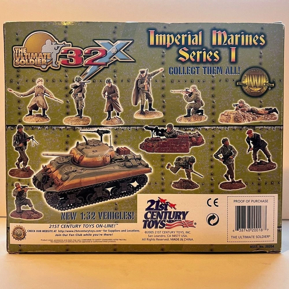 RARE 1:32 21st Century Toys Ultimate Soldier WWII Japanese Imperial Marine Set of 6 - Collectible 54mm Plastic Action Figures Uncover the historical allure with the RARE 1:32 21st Century Toys Ultimate Soldier WWII Japanese Imperial Marine Set. This set includes six detailed infantry figures made from high-quality plastic, each standing 54mm tall. Perfect for collectors and enthusiasts, these figures, by the renowned brand Ultimate Soldier, come with slight box damage, as seen in photos. Ideal for ages 5 and up, this collector's set brings the valor of WWII to your collection. Iconic Brand: Part of the esteemed Ultimate Soldier series by 21st Century Toys. Durable Material: Crafted from sturdy plastic to ensure longevity. Collector's Item: UPC 0638748200187, a prized addition for any military collection. Highly Detailed: Each 54mm figure represents the Japanese Imperial Marines of WWII with precision.