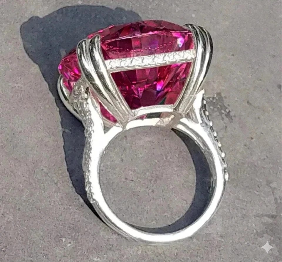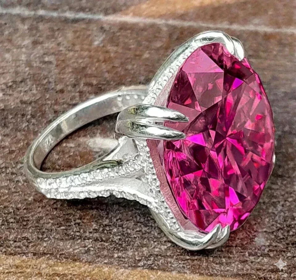 DELIVERED FREE OF TARIFFS OR DUTIES COMES WITH CERTIFICATE OF AUTHENTICITY RARE DIAMOND! GREAT SPARKLE ! Diamond Color - Pink Shape of Diamond - Round Brilliant Cut Approx. Weight of Diamond - 19.70 Carat Approx. Size of Diamond - 18 mm Origin of Diamond - Brazil Species - Earth Mined Treated - HPHT Clarity - VVS1 Cut - Excellent Size of Ring – US 7 is default size - (Can be resized for additional $ 20.00 or default will be shipped) https://www.ebay.com/itm/404196768619 You can pay for resizing from the following link: Please copy and paste the above link in your browser Metal - Stamped Solid 925 Sterling Silver Finish - White Gold This diamond ring is handcrafted with utmost care. Would make an ideal gift for someone special. The diamond has excellent cut and luster. Comes in attractive packaging. CERTIFICATE OF AUTHENTICITY PROVIDED Shipping : Shipping is by UPS/SPEEDPOST/FEDEX or similar shipping agencies to reach you in 9-12 business days after processing the order. Tracking is provided. Please note: Jewelry items can take up to 10-12 business days to process to take care of ring sizing if any, polishing, finishing, packing and handling, certification, documentation etc. Shipping Charges include eBay fees on Shipping, packaging, certification costs, manpower costs, overheads, taxes etc. in addition to actual courier/postal expenses which have increased substantially as a result of pandemic & global economic conditions. We do not artificially increase the price of the products to include shipping charges but only charge what shipping actually costs us. Combined Shipping: Combined shipping discount is available up to 5 (Five)items in an order to be purchased within 5 days. You can continue to buy- Any additional items above 5 in quantity will be considered a new order. This is to avoid pilferage en-route as well as to ensure that you are happy with the merchandise. Once you have received their items you may buy additional items again. This limit may be revised for repeat and regular customers. Payment: Buyers are requested to pay within 3 (Three) days of purchases. eBay will automatically open unpaid item cases in case payment is not received within this period. The item will also be available for purchase to other buyers till such time that the payment is received. Customs and Taxes: Any customs duties, charges and local taxes are subject to local laws and vary from country to country and hence the payment of any eventual custom duties, charges, levies and taxes etc will be at the buyer's expense. We do not have any control on the same. Returns & Refunds: You can return the item within 14 days of receiving the parcel. - Please return in original packing. Buyers are required to check and ensure that the item/s are in good condition and as per item listing on eBay as no claims for returns and refunds will be entertained thereafter. The returned item should be unused and in original and undamaged condition. Buyer will be required to ensure that the item is sent by trackable shipper. Shipping charges are non-refundable. Refunds are made by PayPal and may take up to 5-7days after receiving back the product/s. Disputes: We aim to settle all disputes amicably. Please do not open any dispute on eBay for dis-satisfaction or for non-receipt or to return an item. We are available through ebay messages system and most messages are replied in a few hours. Personalized satisfaction is of utmost importance to us. Feedback : We always provide excellent feedback to our buyers and expect the same in return with 5-star ratings. In case of any dissatisfaction or any other reason please do contact us before leaving any neutral or negative feedback - we will strive our best to resolve all issues to your satisfaction. Metal : Silver is 925 Sterling Silver with Nickel Free Rhodium Plating. Please refrain from buying if you have allergic reaction to metals. We will not be responsible for any health problems in this regard. Legal Disclaimer : Refund or any claim liability for the buyer is only limited to the value of the item purchased. No additional claims will be entertained for any other reason whatsoever. Please note that since various labs may have different testing methods and the interpretation of all our Diamonds and Stones may differ from one lab to another as well as from one Gemologist, appraiser and Jeweler to another, we will be unable to accept another Lab Certificate or the judgement of any other third party including any Gemologist, appraiser, Lab, Jeweler etc. By consenting to buy our items it is understood that you have read, understood and agree to the terms and conditions as well as the FAQ for the Diamonds and Jewelry being sold buys. FAQ What are Color Diamonds? These are genuine Colored Diamonds found naturally mines mainly from Brazil. They are more porous than White Diamonds and are found in the upper layers of the ground relative to the White Diamonds that are mined deep. Some scientists are of the opinion that their origin maybe a Meteor that impacted earth Billions of years ago. What is their nature? Colored Diamonds are not found in the state as they are sold. They are made from earth mined rough rock found in mines of Brazil. The Rock color varies from Light Blue, Dark Blue, Champagne, Pink, Green etc. What is the treatment process? To bring out its true color it needs to be treated. The process is a natural one employing gentle heating a high-pressure environment (HPHT) which gradually brings out the true color of the Diamond. Are any artificial colors or chemicals added? There are no artificial colors or chemicals included in the process. They are not irradiated. Does it alter the composition? The process may or may not alter the composition. It remains a true Diamond nevertheless. Once our diamonds are heat-treated, it may move the molecules. This causes them to not always test properly with a hand tester. If a hand tester is used, sometimes they test as diamonds and sometime