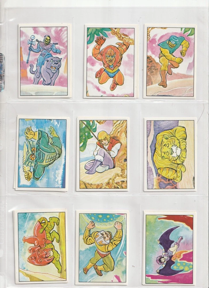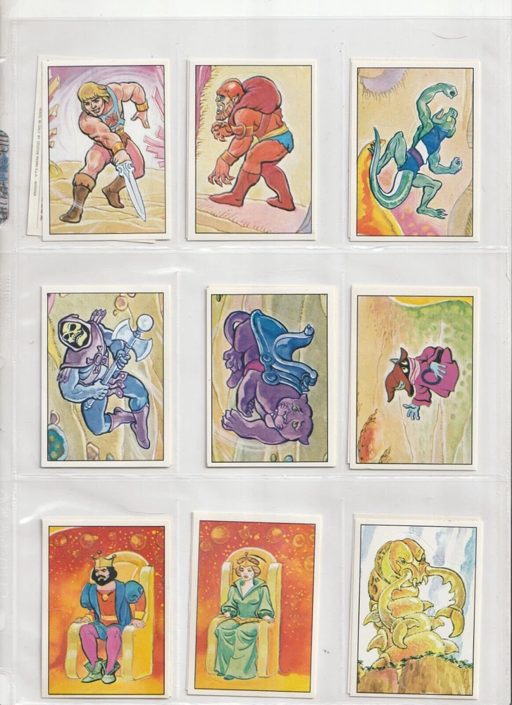 RETURNS ARE NOT ACCEPTED .Read listing carefully, look at pictures, ask questions RETURNS ARE NOT ACCEPTED.PLEASE see scans for condition _______________________________ 💥SO RARE 1983 Panini Masters of Universe MOTU He-Man 100% COMPLETE 216 sticker set with album 💥 these are so nice - they look rack pack fresh album has some wear shipped in sleeves in a binder 💥 SEE high Res SCANS which show actual CONDITION 💥 I will pack well and ship fast! my shipping charge is reflective of how much the USPS charges . ____________________________________________________________ RETURNS ARE NOT ACCEPTED. Read listing carefully, look at pictures, ask questions RETURNS ARE NOT ACCEPTED.PLEASE see scans for condition