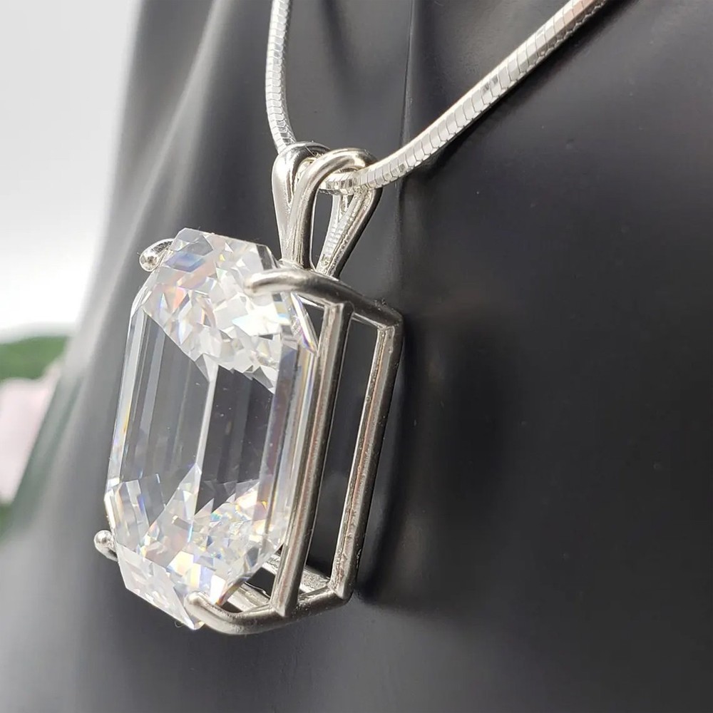 Welcome to Sunlight jewels Buy With Confidence from A Trusted Seller Every Diamond we sell is double tested and 100% guaranteed to be a Real Earth Mined Diamond! ********************************************************************************************************************************* ALL ITEMS WILL BE DELIVERED WITHOUT PAYING ANY TARIFFS, CUSTOM DUTIES ETC. BY YOU. GREAT BRILLIANCE & LATEST DESIGN! Diamond Color - White Shape of Diamond - Emerald Cut Approx. Weight of Diamond - 22.70 Carat Origin of Diamond - Brazil Approx. Size of Diamond - 18 mm 15 mm 10 mm Species - Earth Mined Treatment - HPHT Cut - Excellent Clarity - VVs1 Metal - 925 Sterling Silver Finish - White Gold CERTIFICATE OF AUTHENTICITY PROVIDED This diamond pendent is handcrafted with utmost care. Would make an ideal gift for someone special. The diamond has excellent cut and luster. Comes in attractive packaging. Shipping : Shipping is by USPS/SPEEDPOST/DHL or similar shipping agencies to reach you in 9-12 business days after processing the order. Tracking is provided. For USPS the tracking will show up in transit after 7-9 days once it reaches US from India. Please note: Jewelry items can take up to 10-12business days to process to take care of ring sizing if any, polishing, finishing , packing and handling, certification, documentation etc. Shipping Charges include eBay fees on Shipping, packaging, certification costs, manpower costs, overheads, taxes etc. IN addition to actual courier/postal expenses which have increased substantially as a result of pandemic. We do not artificially increase the price of the products to include shipping charges but only charge what shipping actually costs us. Combined Shipping: Combined shipping discount is available up to 5 (Five)items in an order to be purchased within 5 days. You can continue to buy- Any additional items above 5 in quantity will be considered a new order. This is to avoid pilferage en-route as well as to ensure that you are happy with the merchandise. Once you have received their items you may buy additional items again. This limit may be revised for repeat and regular customers. Payment: Buyers are requested to pay within 3 (Three) days of purchases. eBay will automatically open unpaid item cases in case payment is not received within this period. The item will also be available for purchase to other buyers till such time that the payment is received. Customs and Taxes: Any customs duties, charges and local taxes are subject to local laws and vary from country to country and hence the payment of any eventual custom duties, charges, levies and taxes etc will be at the buyer's expense. We do not have any control on the same. Returns & Refunds: You can return the item within 14 days of receiving the parcel. - Please return in original packing. Buyers are required to check and ensure that the item/s are in good condition and as per item listing on eBay as no claims for returns and refunds will be entertained thereafter. The returned item should be unused and in original and undamaged condition. Buyer will be required to ensure that the item is sent by trackable shipper. Shipping charges are non-refundable. Refunds are made by PayPal and may take up to 5-7days after receiving back the product/s. Disputes: We aim to settle all disputes amicably. Please do not open any dispute on eBay for dis-satisfaction or for non-receipt or to return an item. We are available through ebay messages system and most messages are replied in a few hours. Personalized satisfaction is of utmost importance to us. Feedback : We always provide excellent feedback to our buyers and expect the same in return with 5-star ratings. In case of any dissatisfaction or any other reason please do contact us before leaving any neutral or negative feedback - we will strive our best to resolve all issues to your satisfaction. Metal : Silver is 925 Sterling Silver with Nickel Free Rhodium Plating. Please refrain from buying if you have allergic reaction to metals. We will not be responsible for any health problems in this regard. Legal Disclaimer : Refund or any claim liability for the buyer is only limited to the value of the item purchased. No additional claims will be entertained for any other reason whatsoever. Please note that since various labs may have different testing methods and the interpretation of all our Diamonds and Stones may differ from one lab to another as well as from one Gemologist, appraiser and Jeweler to another, we will be unable to accept another Lab Certificate or the judgement of any other third party including any Gemologist, appraiser, Lab, Jeweler etc. By consenting to buy our items it is understood that you have read, understood and agree to the terms and conditions as well as the FAQ for the Diamonds and Jewelry being sold buys. FAQ What are Color Diamonds? These are genuine Colored Diamonds found naturally mines mainly from Brazil. They are more porous than White Diamonds and are found in the upper layers of the ground relative to the White Diamonds that are mined deep. Some scientists are of the opinion that their origin maybe a Meteor that impacted earth Billions of years ago. What is their nature? Colored Diamonds are not found in the state as they are sold. They are made from earth mined rough rock found in mines of Brazil. The Rock color varies from Light Blue, Dark Blue, Champagne, Pink, Green etc. What is the treatment process? To bring out its true color it needs to be treated. The process is a natural one employing gentle heating a high-pressure environment (HPHT) which gradually brings out the true color of the Diamond. Are any artificial colors or chemicals added? There are no artificial colors or chemicals included in the process. They are not irradiated. Does it alter the composition? The process may or may not alter the composition. It remains a true Diamond nevertheless. Once our diamonds are heat-treated, it may move the molecules. This causes them to n