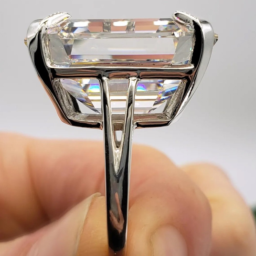 Welcome to Sunlight jewels Buy With Confidence from A Trusted Seller Every Diamond we sell is double tested and 100% guaranteed to be a Real Earth Mined Diamond! ********************************************************************************************************************************* ALL ITEMS WILL BE DELIVERED WITHOUT PAYING ANY TARIFFS, CUSTOM DUTIES ETC. BY YOU. GREAT SHINE! EXCELLENT LUSTER! Diamond Color - White Shape of Diamond - Emerald Cut Approx. Weight of Diamond - 23.00 Carat Approx. Size of Diamond - 18 mm 15 mm 10 mm Origin of Diamond - Brazil Species - Earth Mined Treated - HPHT Cut - Excellent Clarity - VVs1 Size of Ring – US 7 is default size - (Can be resize at the time making payment) Metal - Stamped 925 solid Sterling Silver Finish - White Gold CERTIFICATE OF AUTHENTICITY PROVIDED This diamond ring is handcrafted with utmost care. Would make an ideal gift for someone special. The diamond has excellent cut and luster. Comes in attractive packaging. Shipping : Shipping is by USPS/SPEEDPOST/DHL or similar shipping agencies to reach you in 9-12 business days after processing the order. Tracking is provided. For USPS the tracking will show up in transit after 7-9 days once it reaches US from India. Please note: Jewelry items can take up to 10-12business days to process to take care of ring sizing if any, polishing, finishing , packing and handling, certification, documentation etc. Shipping Charges include eBay fees on Shipping, packaging, certification costs, manpower costs, overheads, taxes etc. IN addition to actual courier/postal expenses which have increased substantially as a result of pandemic. We do not artificially increase the price of the products to include shipping charges but only charge what shipping actually costs us. Combined Shipping: Combined shipping discount is available up to 5 (Five)items in an order to be purchased within 5 days. You can continue to buy- Any additional items above 5 in quantity will be considered a new order. This is to avoid pilferage en-route as well as to ensure that you are happy with the merchandise. Once you have received their items you may buy additional items again. This limit may be revised for repeat and regular customers. Payment: Buyers are requested to pay within 3 (Three) days of purchases. eBay will automatically open unpaid item cases in case payment is not received within this period. The item will also be available for purchase to other buyers till such time that the payment is received. Customs and Taxes: Any customs duties, charges and local taxes are subject to local laws and vary from country to country and hence the payment of any eventual custom duties, charges, levies and taxes etc will be at the buyer's expense. We do not have any control on the same. Returns & Refunds: You can return the item within 14 days of receiving the parcel. - Please return in original packing. Buyers are required to check and ensure that the item/s are in good condition and as per item listing on eBay as no claims for returns and refunds will be entertained thereafter. The returned item should be unused and in original and undamaged condition. Buyer will be required to ensure that the item is sent by trackable shipper. Shipping charges are non-refundable. Refunds are made by PayPal and may take up to 5-7days after receiving back the product/s. Disputes: We aim to settle all disputes amicably. Please do not open any dispute on eBay for dis-satisfaction or for non-receipt or to return an item. We are available through ebay messages system and most messages are replied in a few hours. Personalized satisfaction is of utmost importance to us. Feedback : We always provide excellent feedback to our buyers and expect the same in return with 5-star ratings. In case of any dissatisfaction or any other reason please do contact us before leaving any neutral or negative feedback - we will strive our best to resolve all issues to your satisfaction. Metal : Silver is 925 Sterling Silver with Nickel Free Rhodium Plating. Please refrain from buying if you have allergic reaction to metals. We will not be responsible for any health problems in this regard. Legal Disclaimer : Refund or any claim liability for the buyer is only limited to the value of the item purchased. No additional claims will be entertained for any other reason whatsoever. Please note that since various labs may have different testing methods and the interpretation of all our Diamonds and Stones may differ from one lab to another as well as from one Gemologist, appraiser and Jeweler to another, we will be unable to accept another Lab Certificate or the judgement of any other third party including any Gemologist, appraiser, Lab, Jeweler etc. By consenting to buy our items it is understood that you have read, understood and agree to the terms and conditions as well as the FAQ for the Diamonds and Jewelry being sold buys. FAQ What are Color Diamonds? These are genuine Colored Diamonds found naturally mines mainly from Brazil. They are more porous than White Diamonds and are found in the upper layers of the ground relative to the White Diamonds that are mined deep. Some scientists are of the opinion that their origin maybe a Meteor that impacted earth Billions of years ago. What is their nature? Colored Diamonds are not found in the state as they are sold. They are made from earth mined rough rock found in mines of Brazil. The Rock color varies from Light Blue, Dark Blue, Champagne, Pink, Green etc. What is the treatment process? To bring out its true color it needs to be treated. The process is a natural one employing gentle heating a high-pressure environment (HPHT) which gradually brings out the true color of the Diamond. Are any artificial colors or chemicals added? There are no artificial colors or chemicals included in the process. They are not irradiated. Does it alter the composition? The process may or may not alter the composition. It remains a true Diamond neverthel