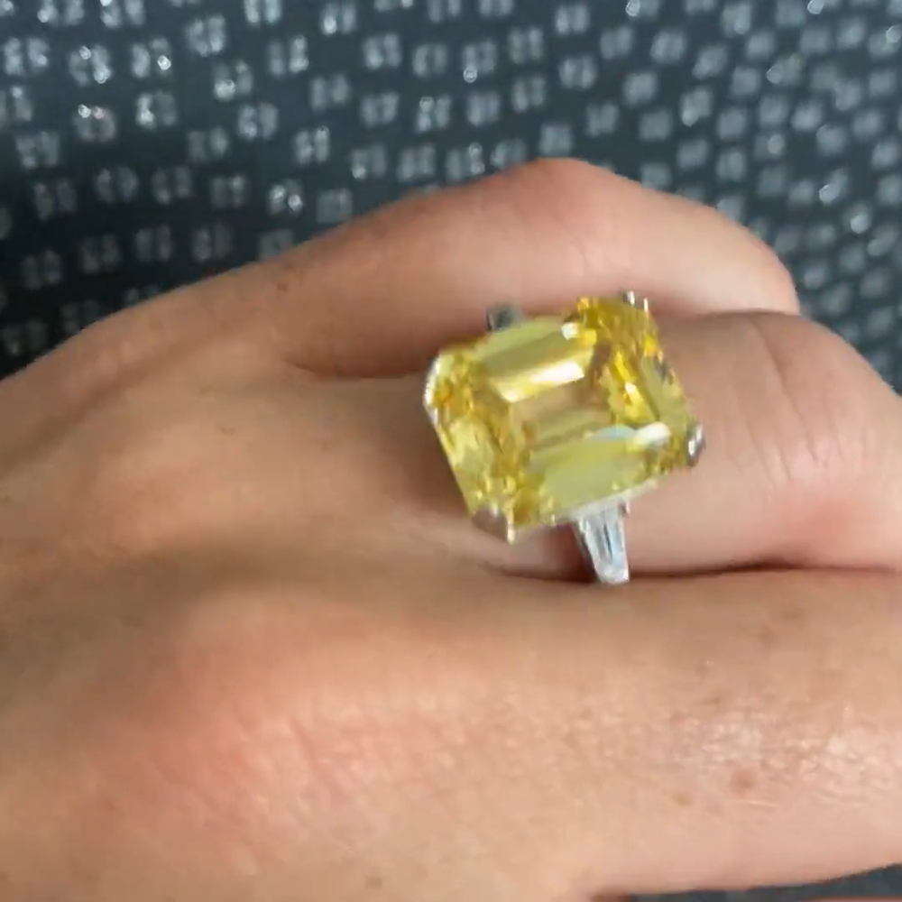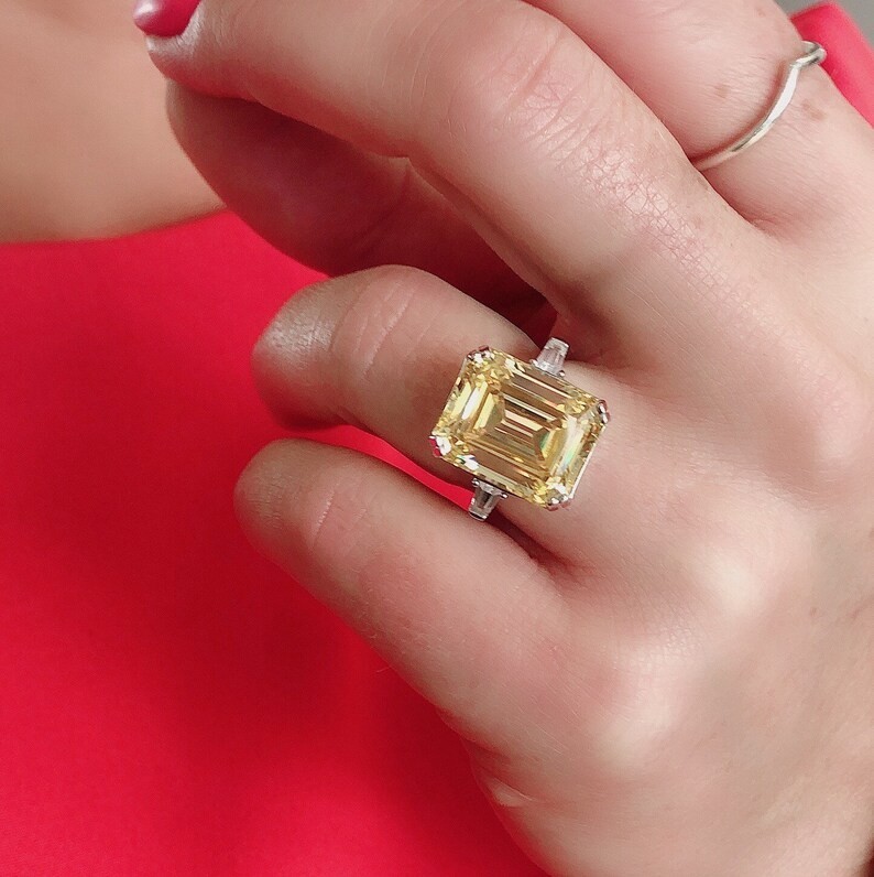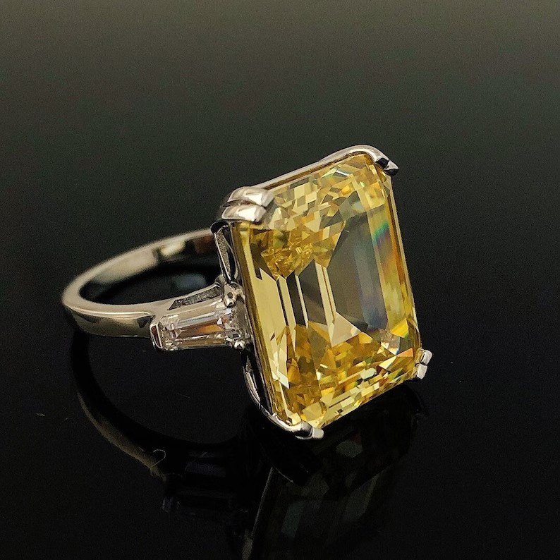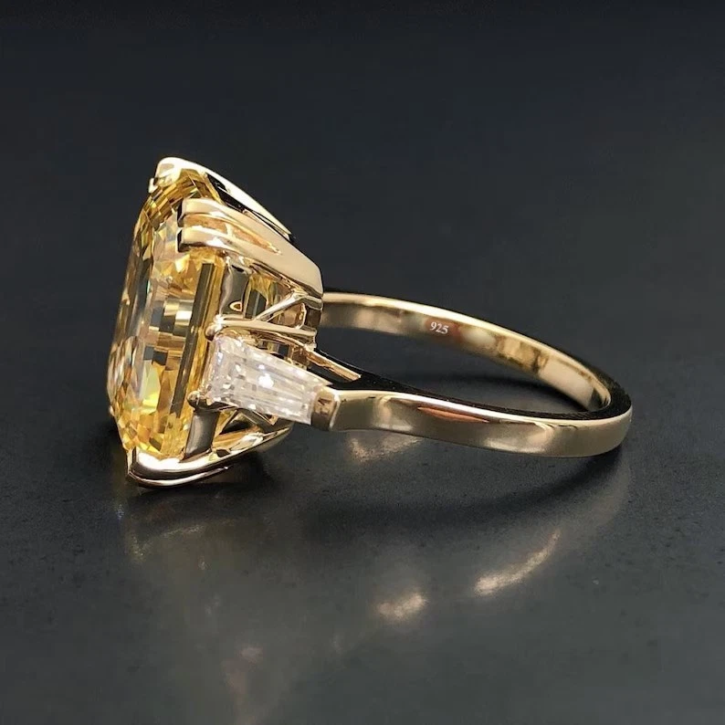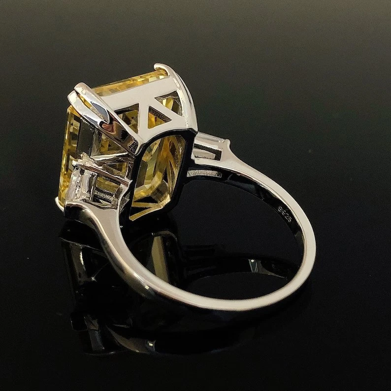 HUGE & RARE 35.00 Ct Emerald Cut Champagne Treated Diamond Ring 925 Silver