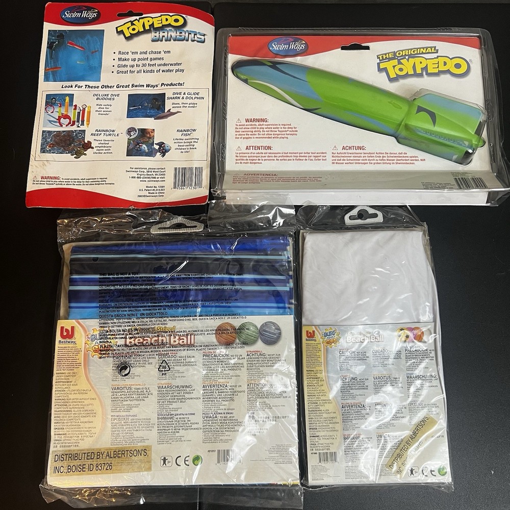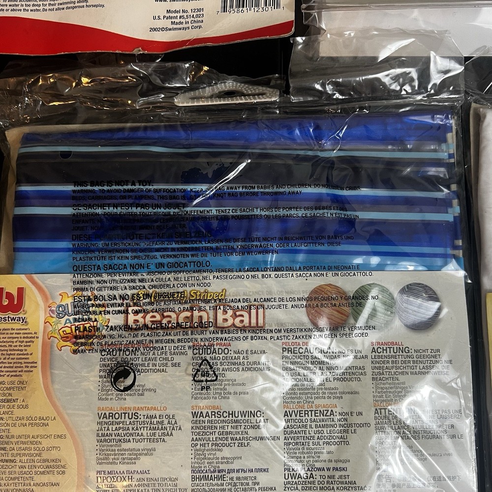 The product is a rare 48" jumbo surf and sun beach ball by Bestway, made in the United States in 2002. This vintage beach ball is designed with a glossy blue striped vinyl exterior, making it stand out on the beach. Perfect for outdoor play and enjoyment in the sun, this NOS (new old stock) beach ball is sure to bring a touch of nostalgia to your next summer adventure.