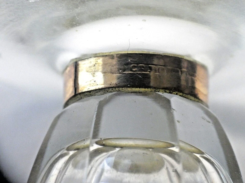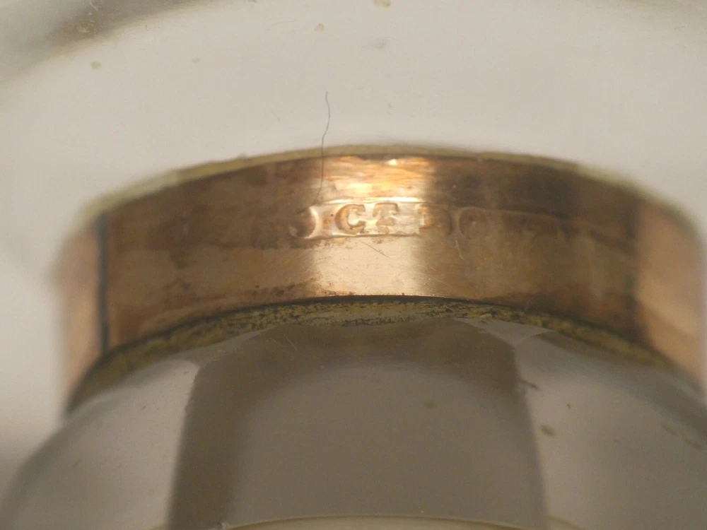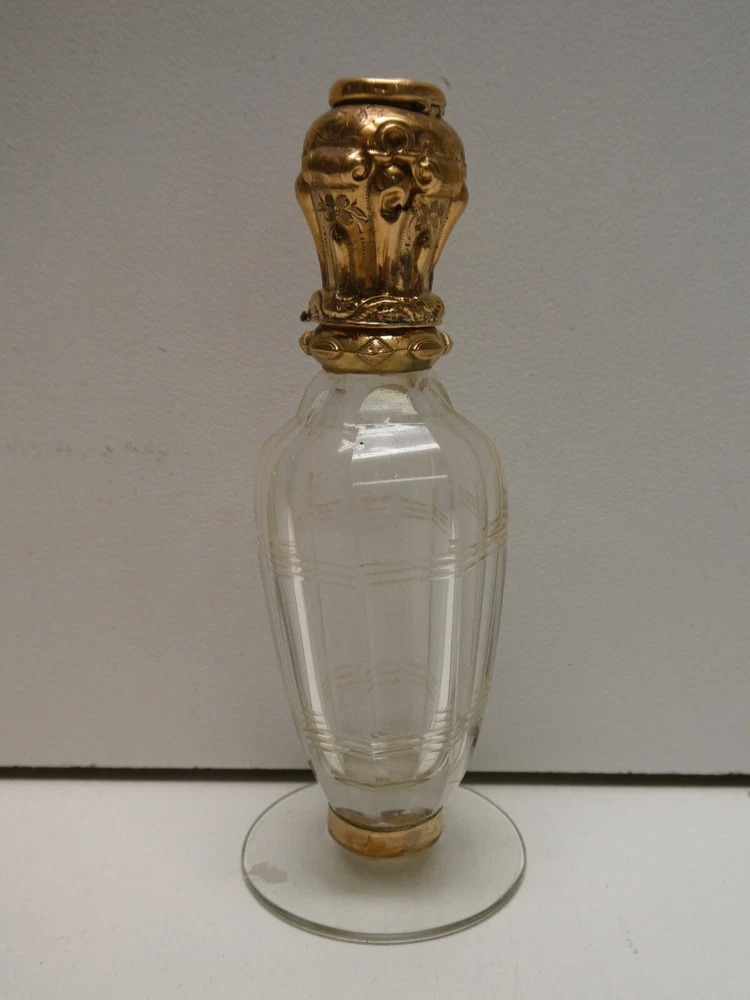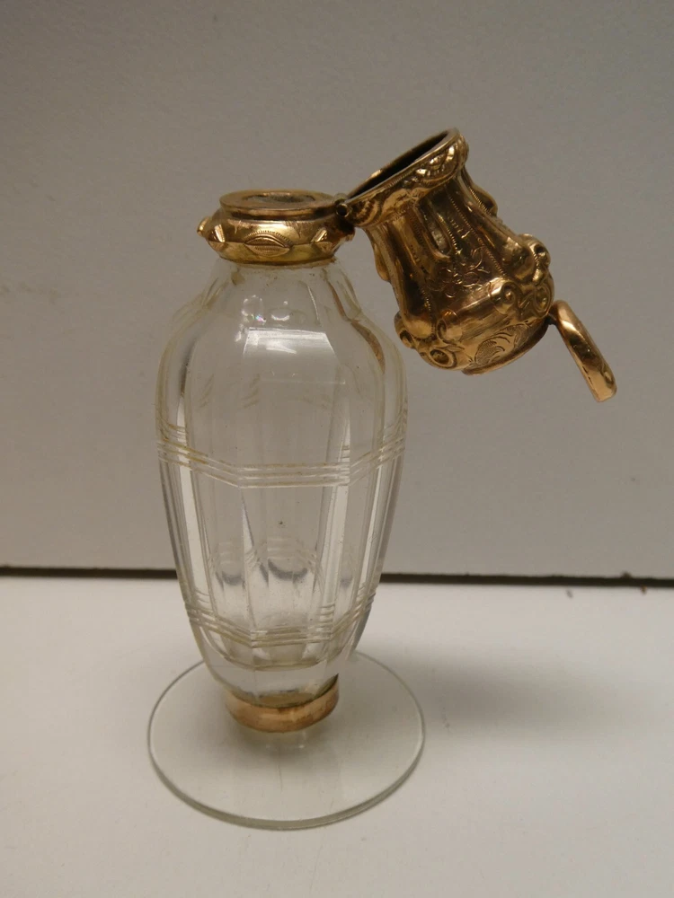 RARE ANTIQUE 18 CT GOLD MOURNING PERFUME SCENT CRYSTAL BOTTLE PLAITED HAIR LID GOOD CONDITION - GENERAL WEAR CONSISTENT WITH AGE AND USE SMALL CHIP TO GLASS RIM UNDER THE GOLD COLLAR MISSING INTERNAL GLASS STOPPER 10.5 CM TALL STAMPED - HALLMARKED NICE COLLECTORS PIECE
