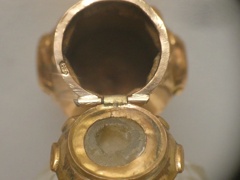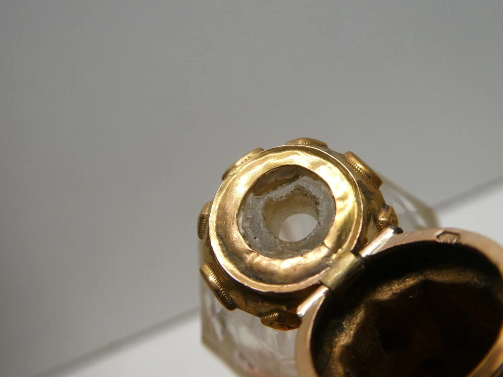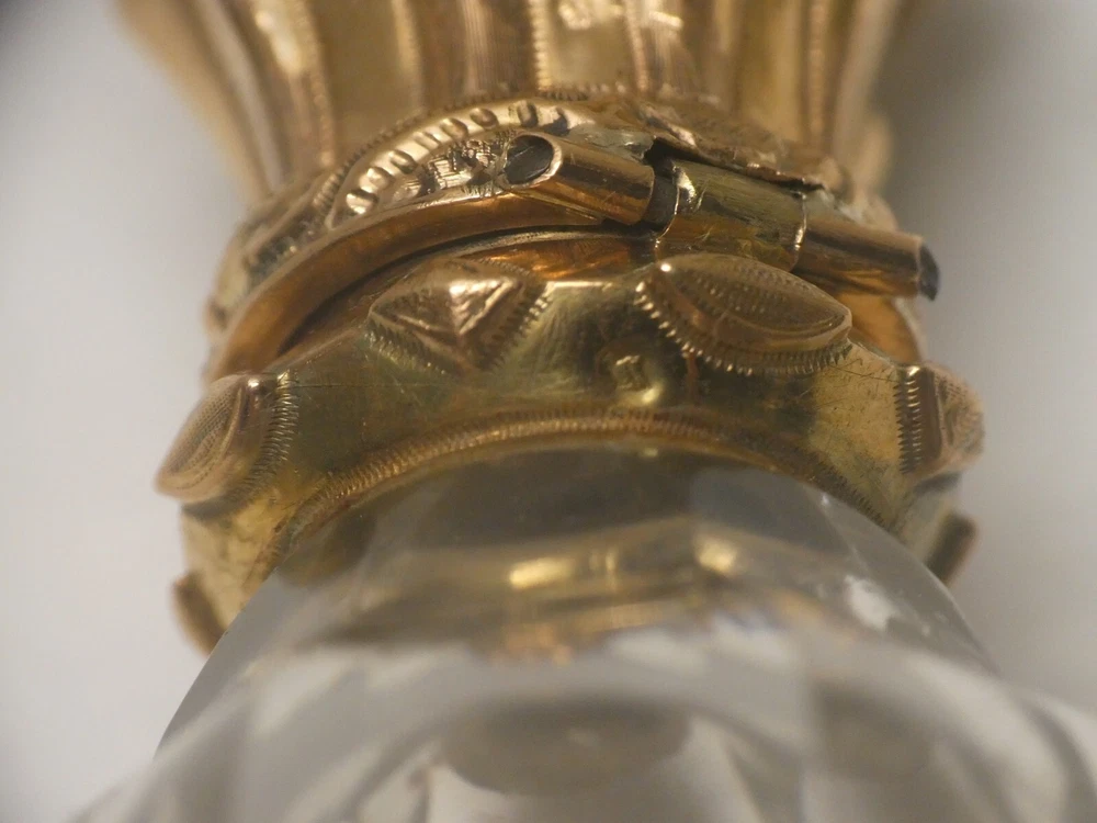 RARE ANTIQUE 18 CT GOLD MOURNING PERFUME SCENT CRYSTAL BOTTLE PLAITED HAIR LID