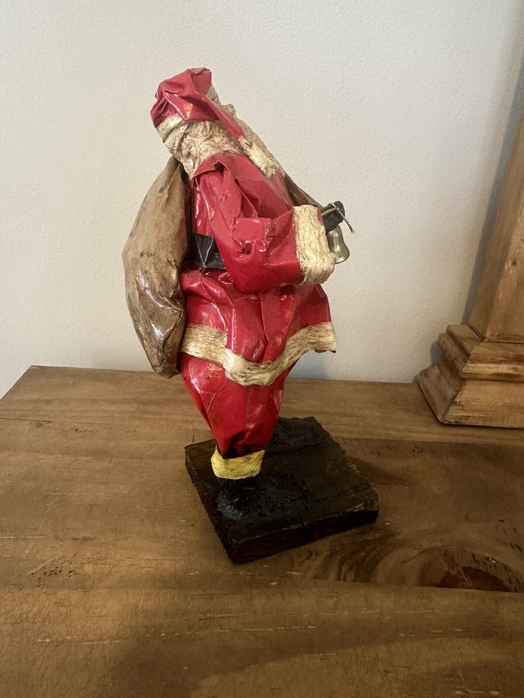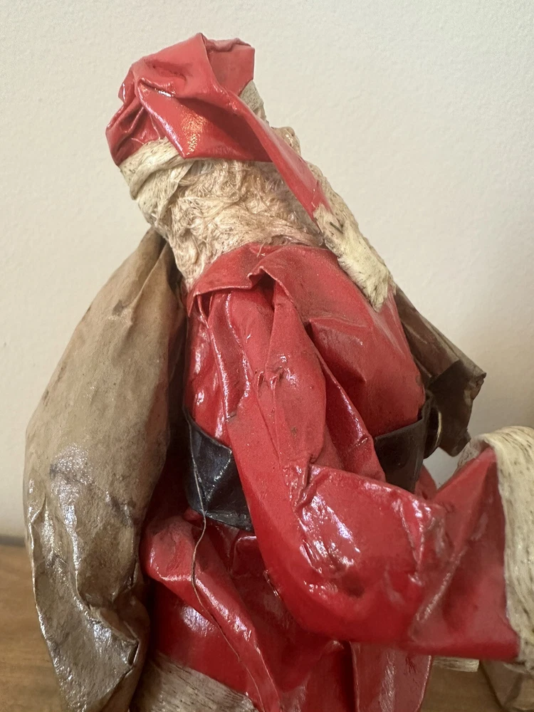 Bring home the joy of Christmas with this rare antique paper mache figurine of Santa Claus. The hand-painted red suit and charming details make it a perfect addition to any holiday decor. Measuring at 8.5 inches tall, this original piece is made with quality materials and is sure to be a cherished collector's item. Celebrate the magic of the season with this one-of-a-kind figurine. The intricate finish and unique design make it a must-have for any lover of holiday decor. Add it to your collection or give it as a gift to a fellow collector.