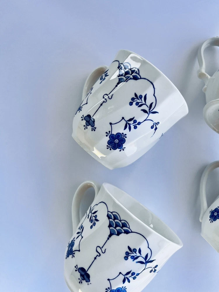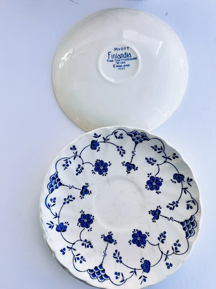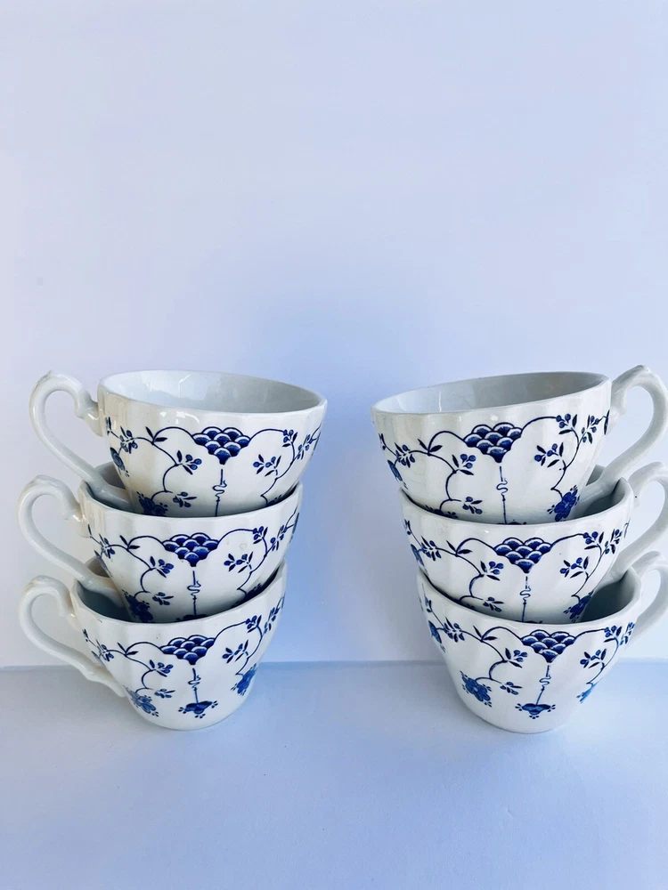 This is a rare set of 6 tea cups and 4 saucer plates, as well as 3 coffee cups, from Churchill England in the Finlandia design. The pieces were manufactured in 1795 and are perfect for collectors or anyone who appreciates fine pottery and glass. The brand is Churchill and the set includes only saucers, with no other accessories. These cups and saucers are perfect for serving tea or coffee to guests in style. The origin of the set is England and it falls under the categories of Pottery & Glass and Decorative Cookware, Dinnerware & Serveware.