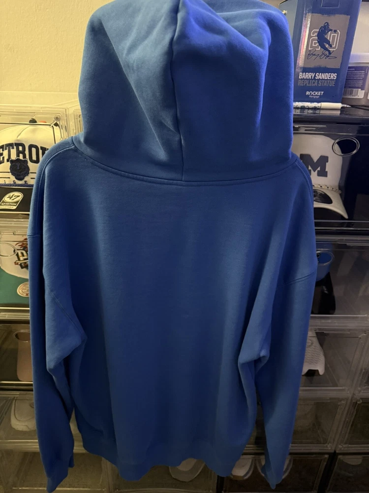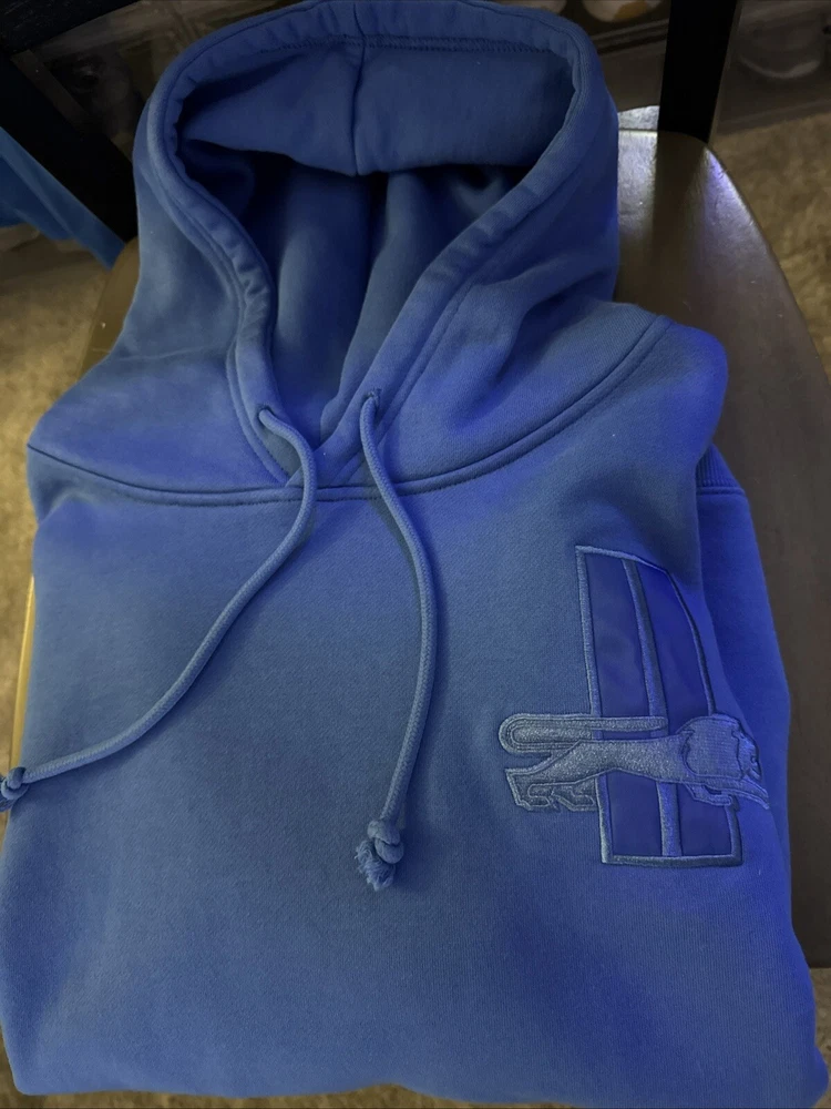 Never have seen this hoodie anywhere except the day I bought it at Ford Field. It is so beautiful but unfortunately is too small. M&S hoodie's I've learned I need a size large, every other brand I wear Medium. wore it to one game, washed it 2-3 times.