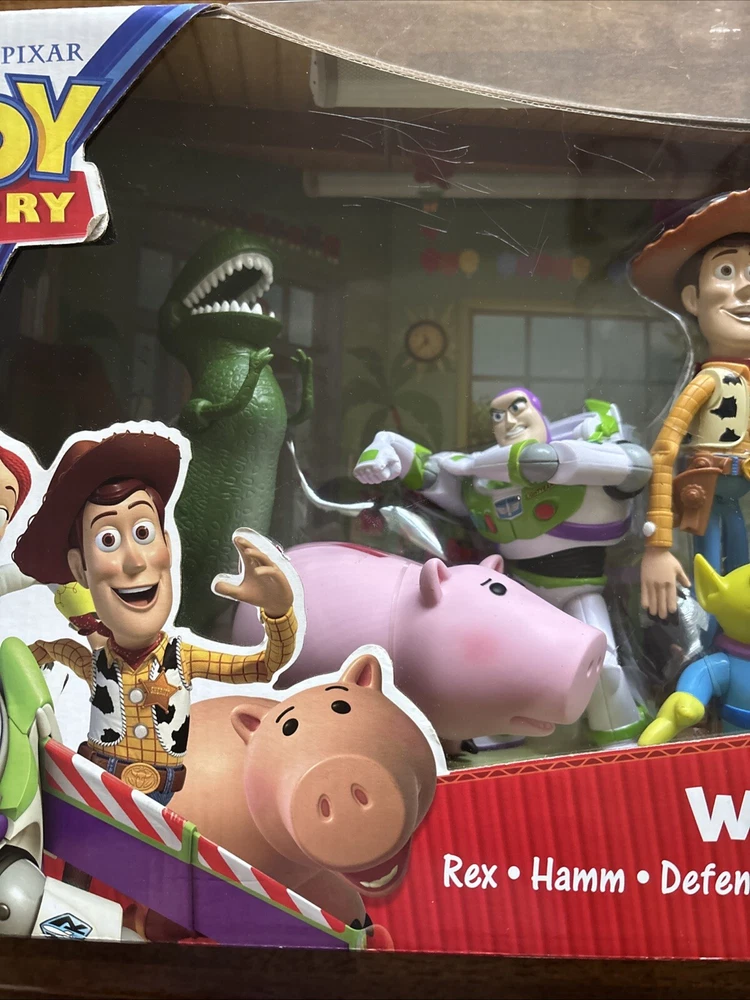 New in package! Rare find! Toy Story “Welcome to Sunnyside” set. Includes Rex, Hamm, Defender Buzz Lightyear, Alien, Sheriff Woody, Jessie, and Lotso.