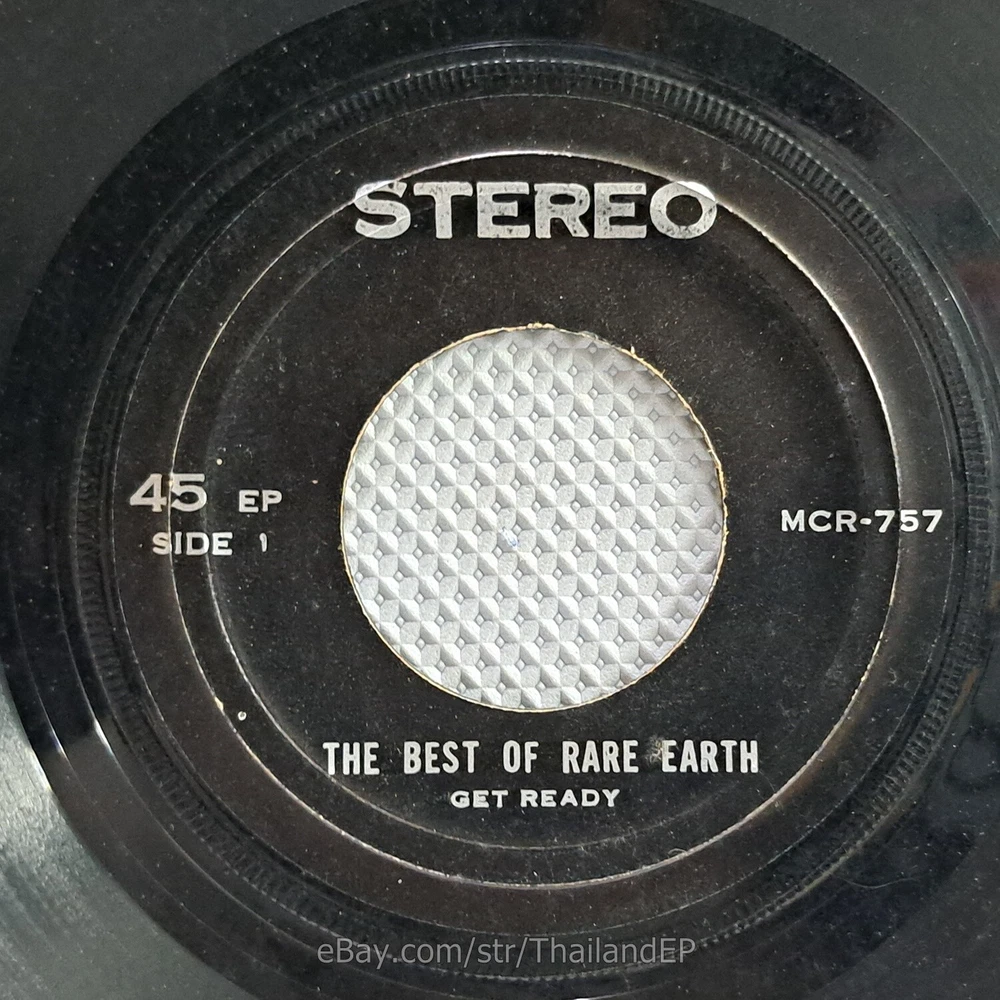Welcome to The World of ""Thailand Vinyl Records"".Very rare and beutiful picture of cover. Check everyday . This item is for a true 7" single collector. It was printed and sold locally as limited EP back in the early 70's. Only few copies were spread outside Thailand. Most professional record collectors know that it is scarce nowadays and is absolutely a collector's item. If you know a UK magazine called RECORD COLLECTOR then you must have read many articles mentioning THAILAND EP and this is it !!! Here is your chance to own one-of-a-kind piece of Asian's 7" single history. Description Records !!! DETAIL SONG and ARTIST !!! Side A: A1 = Rare Earth - Get Ready / A2 = Rare Earth - Hey Big Brother Side B: B1 = Rare Earth - What'd I Say / B2 = Rare Earth - 0 Label&Catalogue number : : MCR757 Country of release : THAILAND Condition (Sleeve/Disc) : VG+ / VG+ and pls see picture too. Shipping I am seller in Thailand not USA.So I can not ship 4$ as policy pls understand this real rate from oversea . Price for shipping(Airmail )&Packaging to worldwide only US 14.99 USD .Except Asia and JAPAN only 14.99 USD. You can save cost for combine shipping only 3 USD$ per each. 2xEP=17.99 USD$ , 3xEP=20.99 USD$ . My package very safety by big cardboard don't worry about your's EP/PS/LP. Time delivered 21-45 days . ***All item : have tracking system no need add money*** **For normal shipping (Airmail).Time delivery to ITALY maybe use 1-2 Months, France use 1-2 Months.But Don't worry item will arrived to you sure!!.For fastest and High value you can use Express Mail Service cost for1 EP =39 USD.EP will arrived to you within 5-7 Days. ***All shipment have fully tracking system *** Payment PAYMENT : I accept the follow payment by eBay managed , . My ID eBay provide by eBay .Account will be provide at the end auction.Charges to be covered by winner. If you have question pls email to me anytime i can answer immediatly. I have many EP,PS 7" Thailand Pls Click => View seller's other items Check my feedback , I care and honest all customer.I welcome 0 feedback but contact me first if you will bidding. Good Luck !!!! and Enjoy . 45 RPM / EP/ LP Grading Scale: Mint /NM/ Excellent(VG++) /VG+/ VG /G+ /Good(G) / Fair / Poor / Bad (According Record Collector Magazine (UK)) LOT152-33MCR757