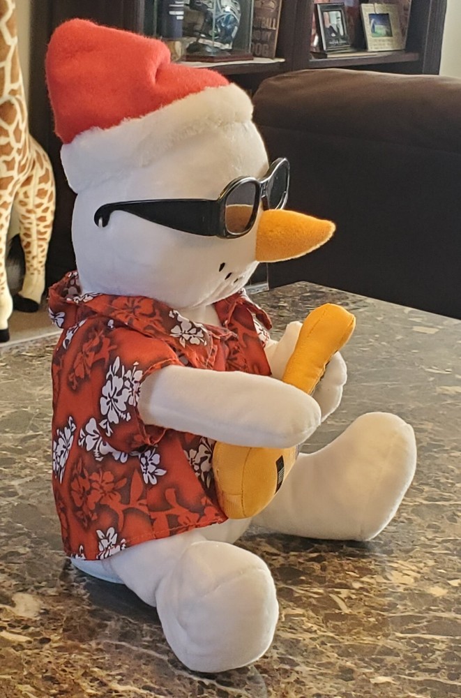 This works perfect with no issues whatsoever..it dances and plays the guitar to the Christmas Vacation song Mele Kalikmaka!! Very clean with no stains on it..any other questions be sure to message me before buying..be sure to check out my other Gemmy collectibles as I bought out a huge collection..all orders are shipped within 24 hours after payment is received This Gemmy Hawaiian Snowman guitar sings the popular Christmas Vacation song, Mele Kalikmaka. It is a rare and unique collectible that is perfect for the holiday season. The snowman design is perfect for those who love winter and Hawaiian themes. The item is made by Gemmy, a well-known brand that specializes in holiday decorations. This Hawaiian Snowman guitar is a great addition to any collection of holiday and seasonal items. It is sure to bring joy and happiness to anyone who hears the song.