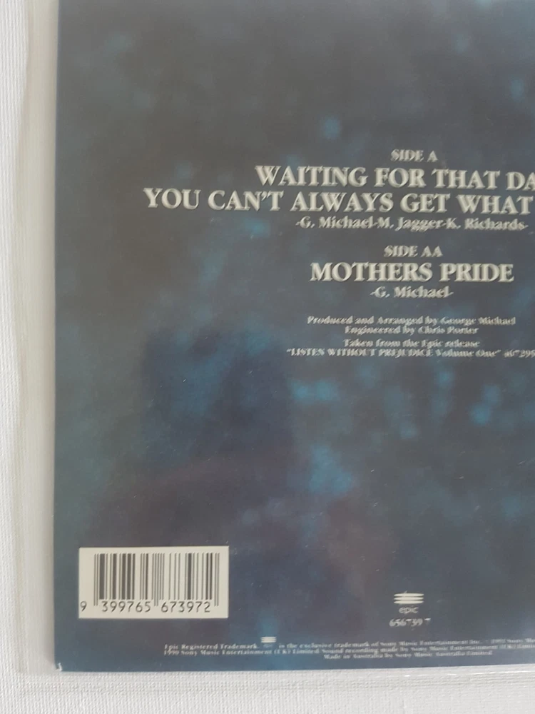George Michael Waiting For That Day/Mothers Pride Epic-656739 7 7" 45 RPM Single Australia 1990 Vinyl Record Tracklist A Waiting For That Day/You Can't Get What You Want AA Mothers Pride Double "A" Sided Single Media M Mint Sleeve M Mint Please Note Check The Photos Carefully Played only Once Keeping Since 1990 RARE